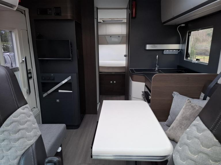 Adria Coral Supreme 670DCA luxurious and spacious motorhome. Low mileage and a great alternative to buying new. Year: 2021 | Berth: 4 |Belts: 5 Engine: 2.3L | Fuel: Diesel | Gearbox: Automatic Mileage: 4905 | Price: £66,995 Behind the cab, forward habitation leisure/dining area is comprised of side bench seating (with two additional seat belts) around an adjustable table. This area can be enhanced by the use of the two swivel cab seats. Beneath each side seat is a fold up forward facing travel seat with a seat belt. The side seating can be configured with the table lowered to form a transverse berth. The conveniently adjacent central kitchen is comprised of a nearside sink, a hob with three gas burners, and a combination oven/grill, while a large fridge and freezer box are located opposite. Progressing through the vehicle, there is an compartment with a toilet and hand basin, and a separate shower cubicle opposite. At the rear of the vehicle is main bedroom with an island double bed. The bedroom and bathroom can be screened off for privacy, with a separate screen for the rear sleeping area. Remote Central Locking Cab and HabElectric Windows/MirrorsCruise ControlReversing CameraCab Air Con.Radio with Integrated Reversing Camera DisplayCab Window BlindsSwivel Cab SeatsTwo Fold-up Travel Seats with Seat BeltsSide Sofa Seating and Table/Transverse Double BerthRear Island Double BedPart Leather Seating ThroughoutHob w. 3 Gas BurnersCombi Oven/GrillFridge w. Freezer BoxKitchen SinkToilet and Hand BasinSeparate Shower CubicleAlde HeatingAerialAwningSolar PanelBike Rack w. 2 RailsRear Air SuspensionTESA Levelling SystemLength: 7.65m (incl. Bike Rack)Weight: 4250kg Please note that to drive this vehicle you will require a C1 licence. ULEZ & CAZ Compliant This vehicle is supplied with a 12 month warranty. Additional images available upon request, with viewing highly recommended (located on our Reading forecourt, RG8). Part Exchanges, Finance and Warranty options available.