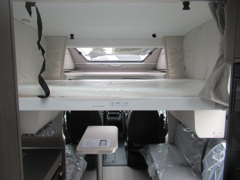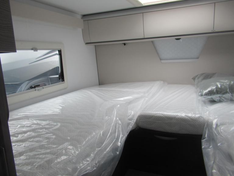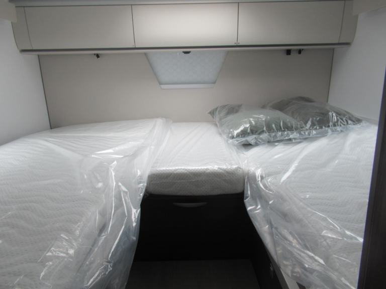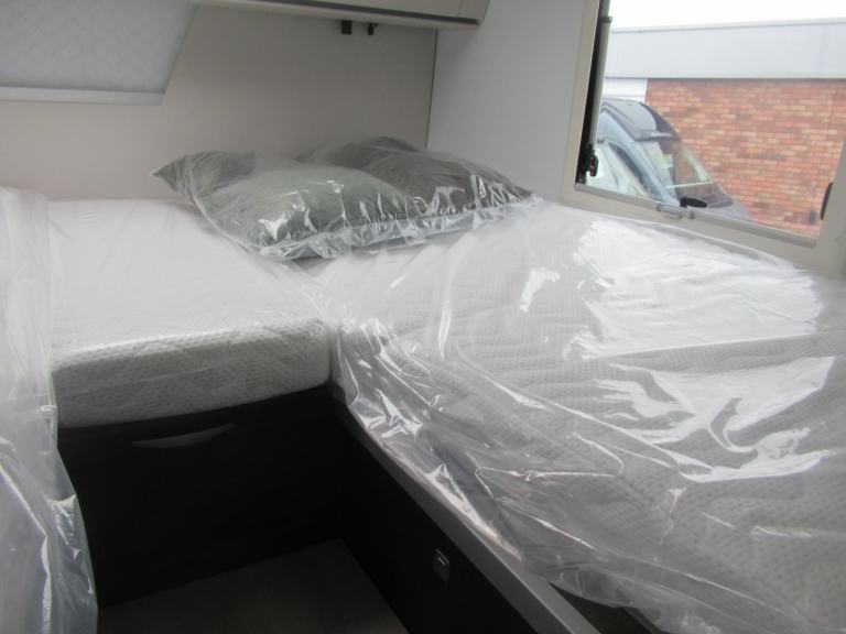 Twin single beds at the rear which can be made into a large double, and a drop down electric bed over the front dinette