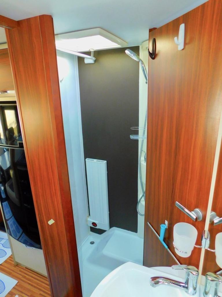 The Adria Sonic Supreme is the most luxurious in the Sonic range with incredibly high quality interior and exterior finishes unique to the Slovenian manufacturer. This Motorhome features the ever popular Rear Walk Around island Double bed which measures 190 kms x 146 cms Plus the Front Electric drop down bed in the cab area  which measures 190 kms x 150 kms, making this van perfect for 4. This highly specified 710 SBC benefits from beautiful two tone exterior colouring and Adrias sleek and stylish front and rear cab designs giving this Motorhome supreme road presence. Extra features include, Fiats 3.0L 180hp engine, Alde warm water heating, Solar panel etc etc etc… One Feature that I particularly like is the Washroom with its Large Separate Shower and clever Sliding and Closing doors to give you complete privacy. We also have the Garage with Doors on Both sides and these doors Measure 110cms x 74 kms.