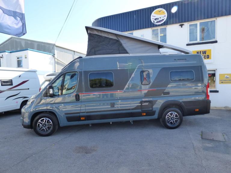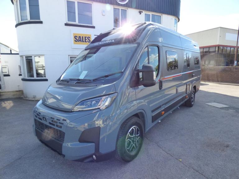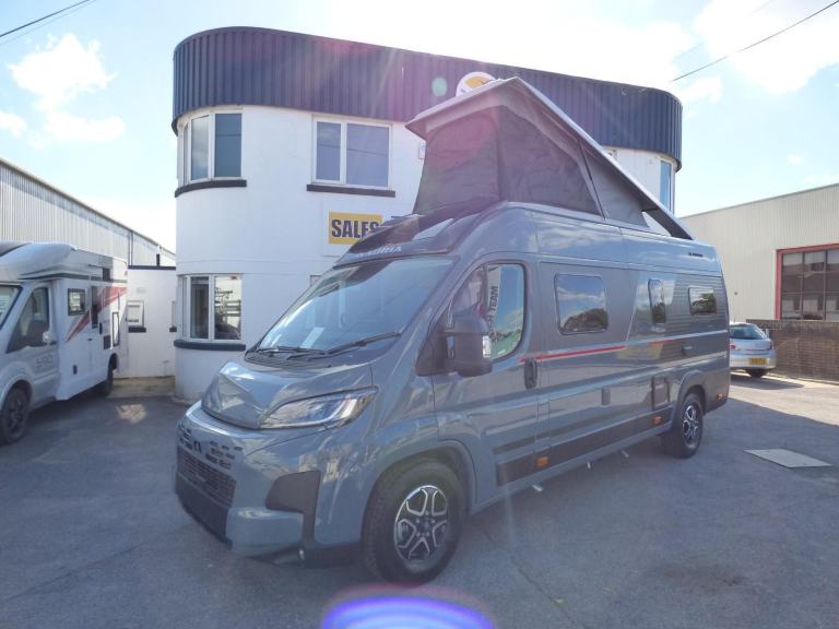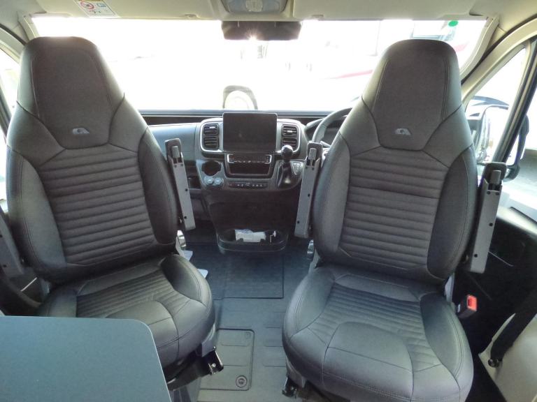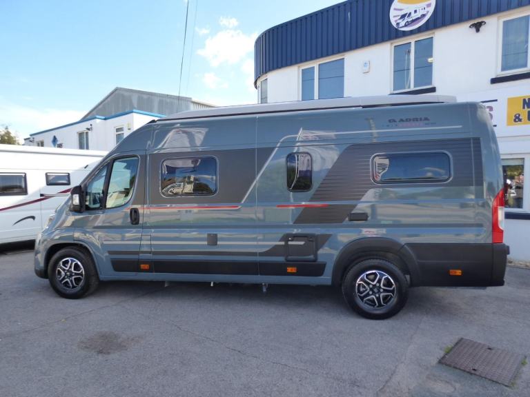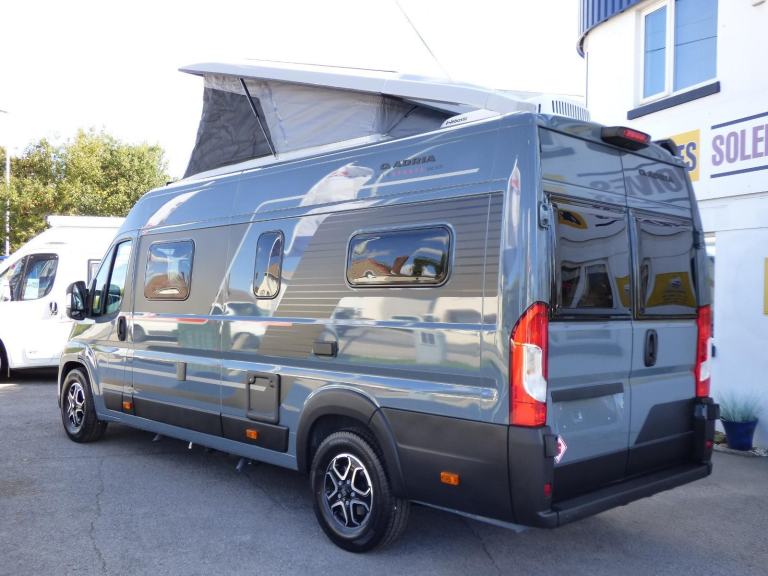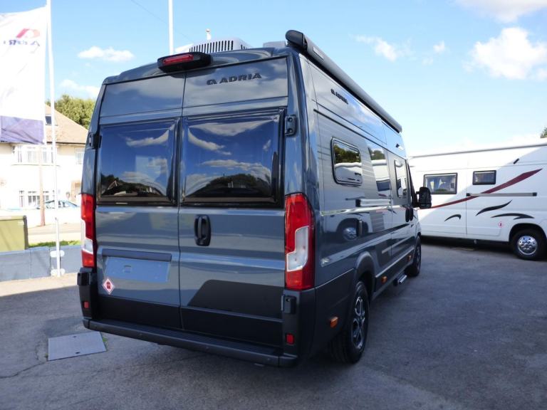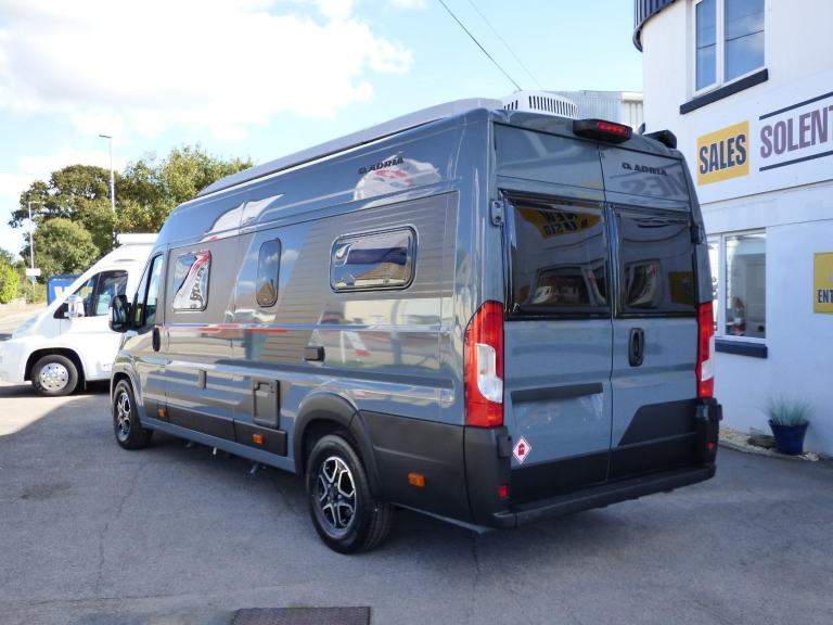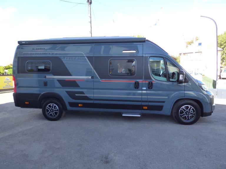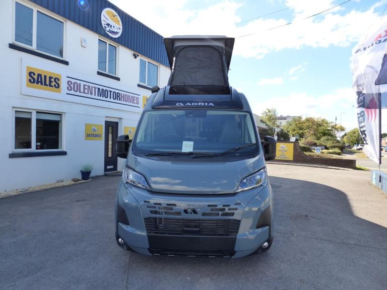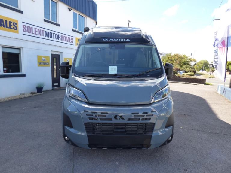 The stunning new 2026 model Adria Twin Sports 640 SGX is in stock now at Solent. One of the most sought after van conversions on the market, the Twin Sports is a superbly designed and built motorhome at home off the beaten track or travelling on adventures in foreign lands. The thoughtful design means there is a lot of storage space and every inch of the 6.36m is used well. The Twin is Fiat Ducato based featuring the new 2.2l 180bhp engine and 8 speed automatic transmission. Also fitted with the optional Lux pack, it boasts LED headlamps and a full LCD driving display. Behind the swivel seats is a dinette that seats 4 in comfort. A ladder accesses the pop-top roof with a comfortable, large double bed. To the side, the kitchen is fitted with a gas oven/grill, a 2 burner gas hob and a fridge/freezer. Opposite, behind a tambour door is the bathroom with cassette type toilet, wash hand basin and a clever partition for the shower. The bedroom has a large electric elevating double bed which can be moved out of the way to provide a huge storage area, ideal for transporting bikes. Heating is provided by a diesel heater with hot water by a Whale Gas boiler. Other features for this Adria Twin Sports 640 SGX include: Truma Habitation Air Conditioning, Pleated Cab Blinds, Navigation, Carpets, Thule Omnistor wind out awning, Pop-Top roof, Solar Panel, Flyscreen for sliding door, Larger 138l Fridge/freezer, Twin Leisure Batteries, Pull out platform, Heated Mattress, Leather upholstery and Fiat Lux Pack. L. 6.36m, W. 2.05m, H. 2.60m, 3,500kg. 4 Berth, 4 Seatbelts, Delivery Mileage. Free Solent Pack worth £1655 comprising Scorpion S5 Alarm & Tracker, 22" Falcon Smart TV, Falcon Soundbar and Falcon 4G motorhome WiFi! Features Include: 180 bhp engine, adaptive cruise control, alloy wheels, automatic transmission, carpets, fiat lux pack, flyscreen for sliding door, habitation air conditioning, heated mattress option, iso fix child seat fixings, larger fridge option, leather upholstery, pleated cab blinds, pop top, reversing camera, solar panel, thule awning, twin leisure battery option, webasto diesel heating, free prestige pack worth £1655!, outdoor table holder, sliding door closing assistance