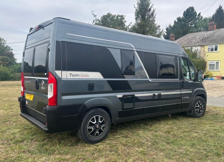 - ONE OWNER FROM NEW- LOW MILEAGE - HIGH END COMPACT PANEL VAN - 6 METERS- 6 SPEED MANUAL - EURO 6 - 150 BHP - ULEZ COMPLIANT- 4 TRAVELLING SEAT BELTS- 3 SOLAR PANELS - IDEAL FOR OFF GRID- REAR FIXED BED- LARGE REAR GARAGE AREA- CAB AIR CON, REVERSING CAMERA- WELL EQUIPPED KITCHEN AREA- WASHROOM WITH PULL ROUND SHOWER SCREEN- WIND OUT AWNING - CAN BE DRIVEN ON A STANDARD DRIVING LICENCE------------------------------------------------------------------------------AVAILABLE TO VIEW NR GREAT DUNMOW, ESSEX------------------------------------------------------------------------------For further details including extra photos and an external and internal video of this motorhome please send in an enquiry via the advert or give me a call. I would be very happy to help with any questions and can also offer a pick up and return service from local train, bus or even airports, should you wish to come and view.------------------------------------------------------------------------------The Adria Twin 600 SPB Supreme is a fantastic compact motorhome that is ideal for travelling around the UK and overseas. Adria motorhomes are market leaders in the field and well known for their stylish design and excellent layout. This particular van would be ideal for a couple or single person looking to spend time away. The layout of the 600 SPB Supreme is ideal with a generous fixed rear bed, comfortable lounge area, well equipped kitchen and washroom with pull around shower screen. It is packed with extras including 3 solar panels and wind out awning. At 6m it is the ideal motorhome to get around UK roads and cities and is Ulez compliant and can be driven on a standard driving licence. The motorhome does have 4 travelling seat belts - ideal if you want to take a couple of guests or family out for the day.This Adria is built on the Fiat Ducato chassis and has the 6 speed manual gear box with a 2.3l engine and 150 bhp giving you all the power you need. It comes with cab air conditioning, cruise control, reversing camera and radio and hill descent.As mentioned the Adria has an excellent layout and makes the most of the space available. At the front you have a comfortable seating area with removable table. The front seats both rotate around and there is a further front facing double seat. This Adria comes with an AVTEX TV. Moving back the motorhome has a well equipped kitchen area that features an oven, grill, gas hob with two burners, sink with mixer tap and good sized 12v Fridge with Ice compartment.At the rear of the motorhome you have a rear transverse bed. This measures 195cm x 155cm at the widest point - it narrows down to 140cm at the feet end. At the front you can make up a further small single. The Adria has a central washroom which has a Thetford cassette toilet and sink. There is also a very clever pull around screen that gives you a shower that you can use without getting the entire washroom wet. Heating and hot water are provided by the Truma system and there is LED lighting throughout.At the rear of the motorhome you have lots of storage space and the bed can even fold up to allow you to take taller items such as bikes when not in use. Externally the motorhome has lots of extras including the three solar panel giving you the option of short breaks off grid - ideal for festivals or sporting events.In summary the Adria is a wonderful compact motorhome and is ideal from travelling the UK or overseas.