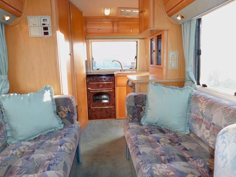 Super Comfortable Lounge and Dining area with virtually unmarked High Quality Velour Upholstery. This whole area is flooded with Light from the Large Opening Sunroof complete with built in blinds and 2 x Sofas that you can stretch out on.