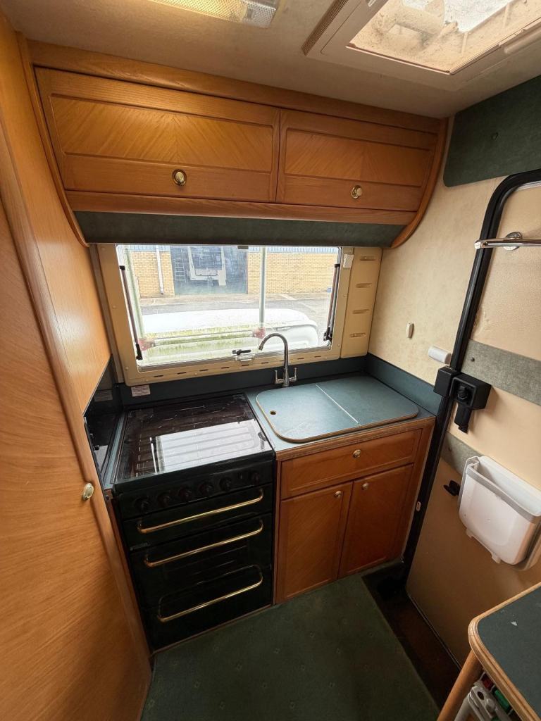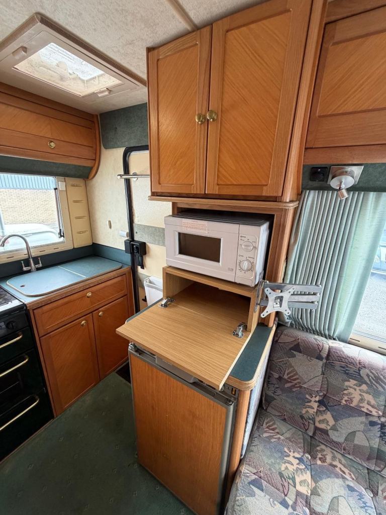 End Kitchen; Microwave; Back Seat Safety Belts; 12V Lighting; V5 Registration Document; Blinds; Grill; Awning; Double Glazing; Mains Hookup; Sink; Oven; AM/FM Stereo; Hand Washbasin