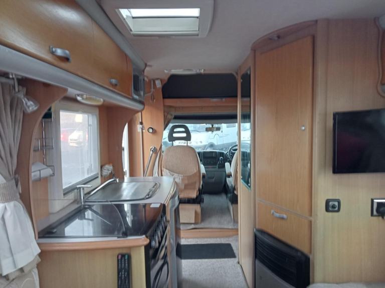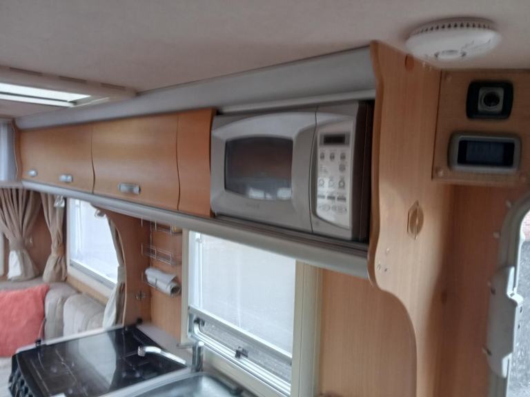 Safety Belt Pretensioners; TV; TV Aerial; Passenger Airbag; Central Heating; CD Player; Alarm; Blinds; Anti-Lock Brakes (ABS); Solar System; Double Glazing; 240V Lighting; Driver Airbag; Round Seating Group; Sunroof; Immobiliser; Electronic Stability Program (ESP); Microwave; Cooker; Air Conditioning; External Side Lockers; 12V Lighting; Central Seating Group; V5 Registration Document; Grill; Awning; Separate Shower; Mains Hookup; Oven; Sink; AM/FM Stereo; Hand Washbasin