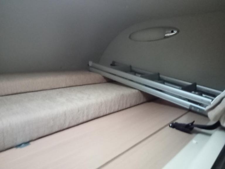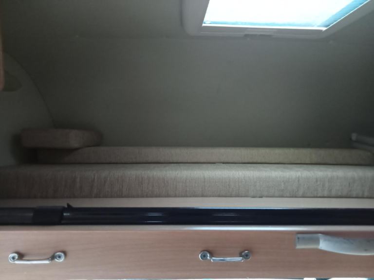 PRIVACY CURTAINS, IN THE REAR WE HAVE A GOOD SIZED OVER THE CAB DOUBLE BED WITH LADDER ACCESS AND SKYLIGHT, GOOD SIZED BATHROOM WITH SHOWER AND THETFORD FLUSHING CASSETTE TOILET AND VANITY UNIT,, MIRROR, WARDROBE WITH FOLDING TABLE STORED AWAY FROM SIGHT, VISION PLUS AERIAL BOOSTER, REMOTE CONTROL COLOUR TV FITTED TO SECURE BRACKET, U SHAPED LOUNGE WHICH MAKES A LARGE DOUBLE BED, SPINFLO 4 BURNER GAS HOB OVEN AND GRILL, SINK WITH HOT AND COLD WATER, DOMETIC FRIDGE WITH FREEZER BOX, MICROWAVE, TRUMA ULTRA HEAT FIRE AND HEATING, TRUMA WATER HEATER, LARGE SKYLIGHT AND SMALLER ONE SO NICE AND BRIGHT, CURTAINS AND BLINDS, ZIG UNIT WITH 110/230 V LIGHTING AND PLUG SOCKETS, PLENTY OF CUPBOARDS AND STORAGE SPACE,