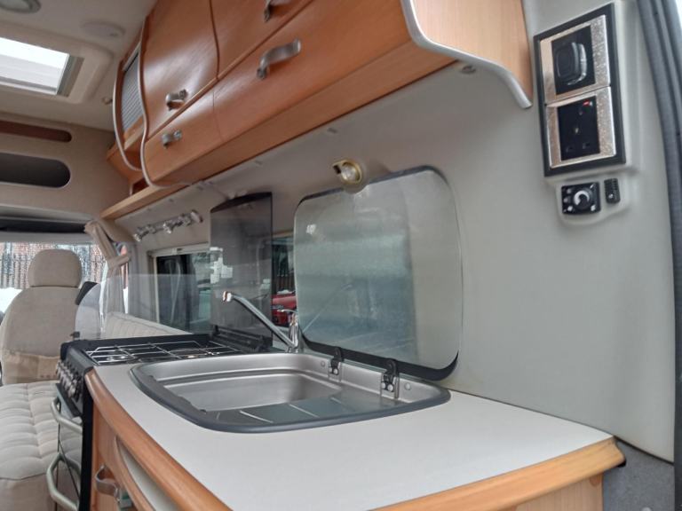 Safety Belt Pretensioners; TV; TV Aerial; Central Heating; CD Player; Alarm; Blinds; Anti-Lock Brakes (ABS); Double Glazing; 240V Lighting; Driver Airbag; Sunroof; Immobiliser; Electronic Stability Program (ESP); Full Service History; Cooker; Back Seat Safety Belts; 12V Lighting; External Side Lockers; Central Seating Group; V5 Registration Document; Grill; Awning; Separate Shower; Mains Hookup; Oven; Sink; AM/FM Stereo; Hand Washbasin