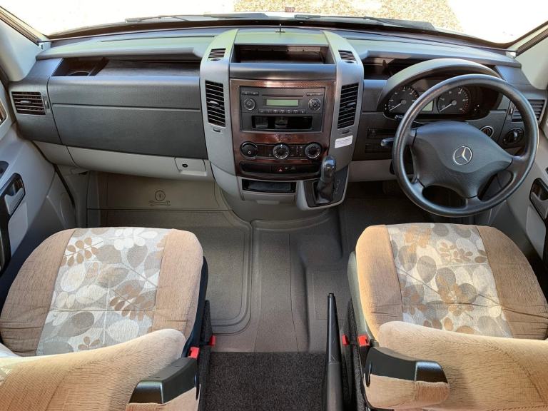 Mercedes Sprinter 316 CDi 163 bhp Automatic 4 Berth 2 Belts MAM 3850kg 7.29 metres in lengthFULLY EQUIPPED WITH EVERTTHING YOU NEED, POTS,PANS THE LOTAn extremely good example of an Auto Sleepers Gloucester, based on a Mercedes Sprinter with an automatic gearbox, alloy wheels, Cab Air-con, Cruise Control and stylish integrated flush [Website URL removed] covered just over 24000 miles and is in excellent condition inside and out, with no noticeable knocks or scrapes.Layout comprises rear fixed nearside french bed, adjacent bathroom, central fully equipped kitchen and side facing bench seats for the lounge.The bed has two seperate single mattresses which can be remotely raised individually to about 30 degrees.Built when Auto-Sleepers renowned build quality stood out from the rest, evident from the quality cabinetry to the external fibre glass mouldings and skirts.Air-ride rear suspension has been added for improved road handling and cornering and 4 new tyres together with new cab and leisure batteries were fitted last year.Full service in September this year and a clean Haitation report in August and the sale can include an MB& G Hab/Cab warranty with the option to use workshops of your choice.To receive access to further information including a video and a comprehensive picture file please click the button ENQUIRE NOW.Alternatively contact me for a link direct to the Video and Full picture file.Finance, part exchanges and Free 31-day insurance all readily available. Local pick up from Railway station or airport can also be arranged.Viewings are by appointment and can be arranged by calling the broker,Steve Williamson.01522 90417607375 672 598
