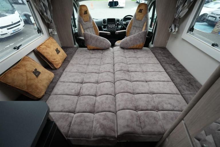 3500 KG Gross weight standard driving licence required only...L-6.00m...W-2.32m...H-2.90m...The 2024 Auto Sleeper Nuevo EK Plus, 9 Speed Automatic. Combines top-tier functionally and convenience from a surprisingly spacious 2 berth 2 travelling seats configuration. Together with ample storage for your personal belongings. Makes the Nuevo EK Plus, extremely popular with adventurous couples. By having the fully equipped kitchen area, situated at the rear. That encompasses dual fuel hobs, 3-burner gas hobs, 1-electric plate, combination oven grill, microwave, extractor fan and fridge freezer. The ideal space for rustling up quick snack or delicious meals. Adjacent the airy and combined washroom/shower. Together with a vanity mirror cabinet for your toiletries, as well. Moving forwards to the peaceful dinette lounge area. With two elegant inward facing sofas and by simply rotating both front captain seats around. Ingeniously increases the seating capacity. Assembles the perfect space, for socialising, while enjoying a glass of wine. Then finally when ready for a cosy nights sleep. Will effortlessly convert into an adults size double bed. Which makes up the sleeping arrangements of this beautiful Auto Sleeper Nuevo EK Plus Automatic. That also is enhanced with a great specification. Such as wind out canopy awning, cab air conditioning, cruise control, outside gas BBQ point, diamond cut alloys wheels, solar panel, security safe, plus cab blinds. Will certainly make your adventures exhilarating and rewarding, hopefully!!
