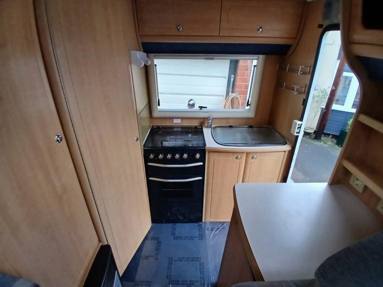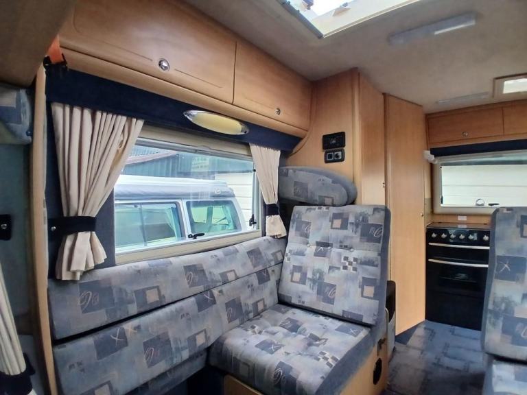 Heating, hot & cold water, fitted carpet set, fly screens, black-out blinds, large skylight, wardrobe/storage, 12v & 240v mains hook up, etc.