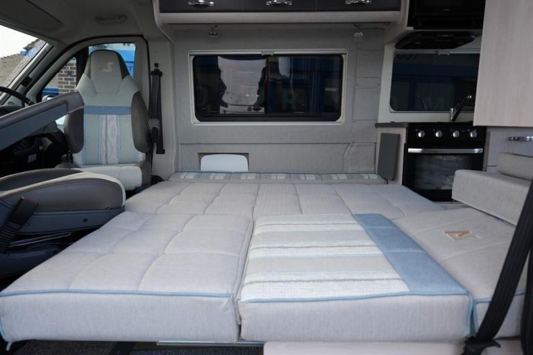 3500 KG Gross weight standard driving licence required...L-5.41m...W-2.26m...H-2.64m...The same family ownership, of this beautiful quality British built Auto Sleeper Symbol. An quintessential choice for the adventures couple. Who desire a incredible versatile 2 berth 3 travelling seats van conversion. Which could be use as the daily commute! As measuring just 5.41 metres in length, easy to manoeuvre. Welcome aboard to the complementary soft furnishings though out together with various storage compartments for your personal possession, needed while exploring. The modern appliance kitchen, situated next to the barn doors. Therefore open them. Letting the fresh air flow through. While preparing a quick snack or gourmet meals. Using the 3-burner gas hobs, combination oven grill, extractor fan, microwave and fridge freeze. Position opposite the combined washroom/shower, with a pull down hand wash basin. The perfect space to freshen up. Next the tranquil atmosphere dinette lounge area. Featuring an inward facing sofa, plus a front facing integrated individual travelling seat. Now rotate both front captain seats around. Cleverly increases the seating capacity. Makes the perfect space for unwinding/socialising, while enjoying that bottle of beer and occasionally looking out at the glorious horizon or the picturesque starry night. When ready to experience a cosy nights sleep. Will effortlessly convert into an adults size double bed. This exceptional Auto Sleeper Symbol also is enhanced with an exclusive package, WIFI, solar panel, reversing camera, air suspension, alloy wheels, wind out canopy awning, cab air conditioning, cruise control, cab blinds, outside gas BBQ point and will certainly elevate your adventures together in sheer comfort.
