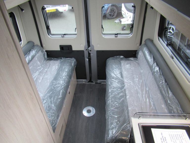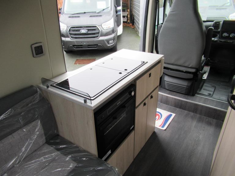Despite its manageable 5.4m length, the Expedition 54 is cleverly designed to maximise every inch of space. Inside, you’ll find a fully equipped kitchen, complete with Thetford oven, grill, sink, and workspace, allowing you to cook with ease while travelling. The bathroom includes a shower, toilet, and fold up sink, giving you complete independence wherever your journey takes you.