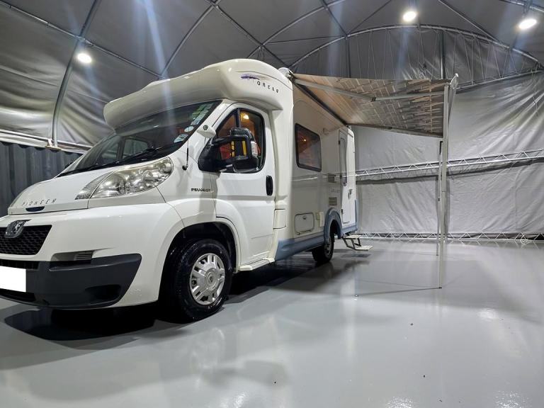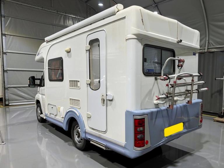 This…. 2007 Autocruise Pioneer Jolliet motorhome offers a practical and well-organised layout, with a rear end washroom and kitchen arrangement that separates living and utility spaces effectively. The interior provides ample storage throughout, supporting longer trips and everyday use. Key features include a Truma heating system for space and water heating, an externally mounted bike rack is fitted. An electric step aids access to the habitation area, while a Fiamma wind-out canopy extends the usable outdoor space. Additional Fiamma door locks are fitted to both the cab and habitation doors, and the vehicle is equipped with a reversing camera for added visibility when driving and parking. Please call to arrange a viewing at our indoor showroom. Any questions, don’t hesitate to ask, and we will be happy to help!