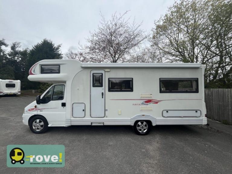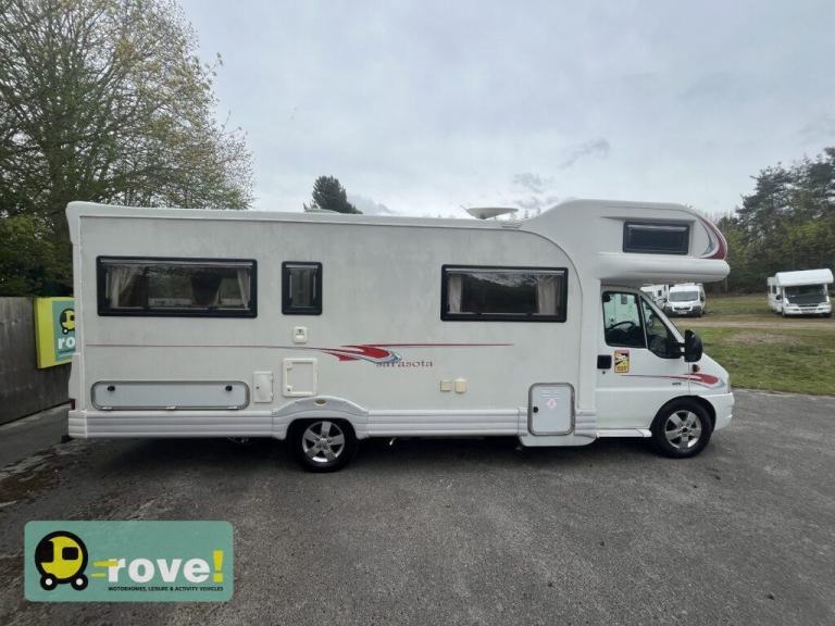 Rove Motorhomes Mansfield are pleased to offer this 2005 Autocruise Sarasota for sale, this 6 berth and 6 seat belt motorhome is based on the Manual 5 speed 2.8l Peugeot gearbox and has covered just 36,903 miles. The weight is 4150kg so you will need your C1 licence to be able to drive it and the overall length is 7.62m.