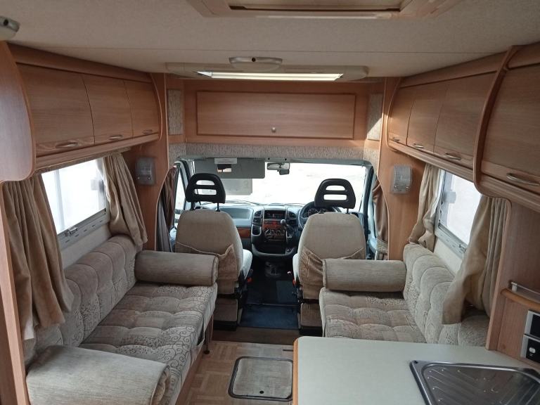 05 PLATE WITH 46500 MILES WITH LOTS OF PAPERWORK FOR THE WORK CARRIED OUT INCLUDING CAMBELT AND WATER AND JUST HAD A NEW CLUTCH FITTED WITH THE RECEIPT. 21 FT LONG 7,4 FT WIDE AND 3700KG SO C1 LICENCE IS REQUIRED PLEASE CHECK YOUR DRIVING LICENCE FOR RESTRICTIONS. ONBOARD WATER TANK, ELECTRIC HOOK UP, TWIN GAS BOTTLE STORAGE WITH 1 GAS BOTTLE STRAIGHT ACROSS REAR STORAGE WHICH GOES UNDER THE REAR FIXED END BED WITH IT LOOKS LIKE A DRIVE AWAY AWNING AND A SAT DISH,