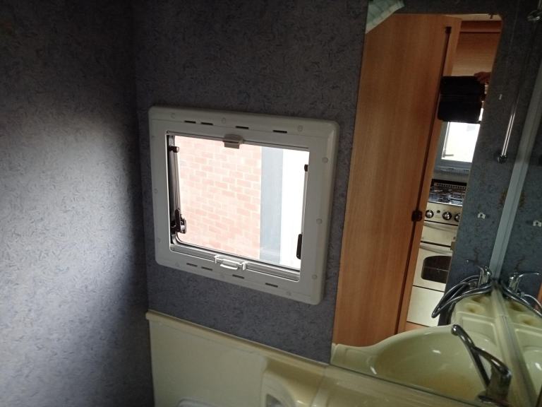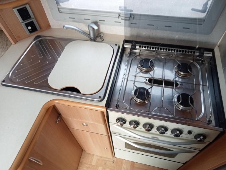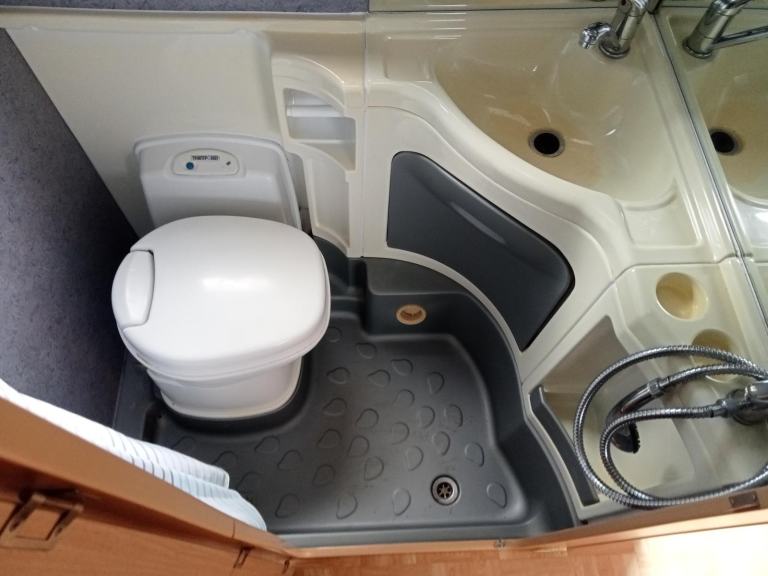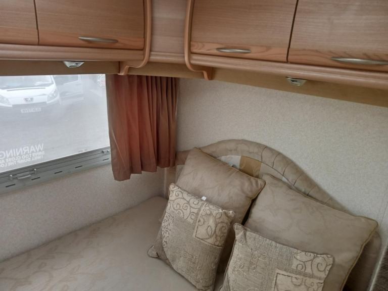 TRANSVERSE FIXED END DOUBLE BED WITH ACCESS TO THE STORAGE UNDERNEATH, GOOD SIZED BATHROOM WITH SHOWER AND THETFORD FLUSHING CASSETTE TOILET AND VANITY UNIT, PLENTY OF CUPBOARDS AND STORAGE SPACE, 110/230 V LIGHTING AND PLUG SOCKETS AND TV AERIAL, EXCELLENT SPACIOUS LIVING ACCOMMODATION, NO SIGNS OF DAMP OR ANY STAINS, DRIVES REALLY WELL,
