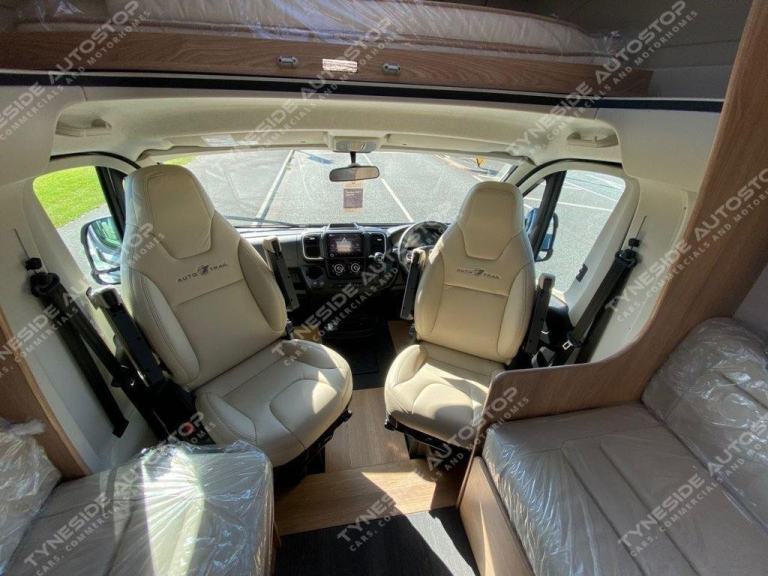 2025 (25) AUTO-TRAIL FRONTIER COMANCHE 6 BERTH MOTORHOME. FANTASTIC 6 BERTH MOTORHOME WITH 2 EXTRA TRAVEL SEATBELTS 4 IN TOTAL, TOWARDS THE REAR IS GREAT SIZE END BEDROOM THAT CAN BE MADE PRIVATE, FANTASTIC SIZE ISLAND BED THAT HAS STORAGE UNDER, WARDROBE SPACE AND DRAW SPACE ON BOTH SIDES, SEPARATE WASH ROOM WITH TOILET, SINK, VANITY MIRROR, AND A MEDICINE CABINET, OPPOSITE IS A LARGE WALK IN SHOWER CUBICLE, TOWARDS THE FRONT THERE IS A LARGE OVER CAB DOUBLE BED, FRONT DINING AREA WITH A BENCH SOFA ON BOTH SIDES PLUS FORWARD FACING SEATING AND DINING TABLE, THE FRONT DINING AREA ALSO CONVERTS INTO A DOUBLE TO BED TO COMPETE THE 6 BERTH LAYOUT, GOOD SIZE KITCHEN AREA WITH A LARGE FRIDGE FREEZER, WORKTOP SPACE, SINK WITH A MIXER TAP, BUILT IN OVEN AND SEPARATE GRILL, 3 GAS BURNER HOB WITH 1 ELECTRIC PLATE, FANTASTIC STORAGE OPTIONS ALL ROUND INCLUDING CUPBOARD SPACE, OVER HEAD CABINETS AND DRAWS, LED LIGHTS, SPOT LIGHTS, PRIVACEY BLINDS, SKY LIGHTS, LPG GAS, TV INPUTS FRONT AND REAR, ALDE HEATING, USB CHARGE POINTS FRONT AND REAR, AWNING FITTED, THE FRONT OF THE CAB HAS AIR CON, TOUCH SCREEN MEDIA, VOICE CONTROL, CRUISE CONTROL, EURO 6, 9 SPEED AUTOMATIC, TOUCH SCREEN MEDIA, 5000KG