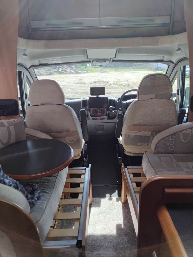 Solar panel, central heating, swivel front seats, small and large tables, reversing camera,