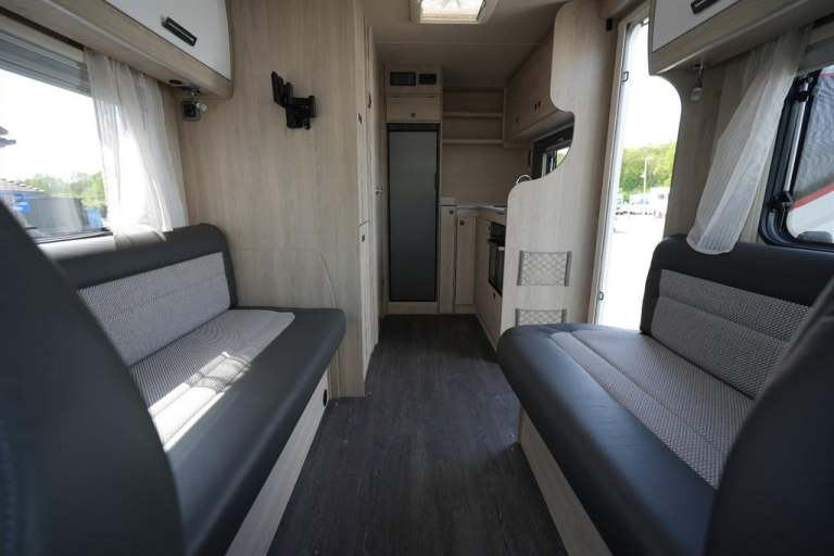 3500KG Gross weight standard driving licence required only...L-5.99m..W-2.35m..H-2.88m..Here we have a fabulous example from Auto Trail, a 2 berth 2 travel seat configuration motorhome, with only 2890 miles. Coming in at under six metres it still classed as a compact leisure vehicle. With it's fully equipped end kitchen, which features 3 gas hob burner, oven grill, large tower fridge freezer and various cupboard space, with one storing the free standing table, together with worktop plus sink. Opposite is the washroom, that benefits from the separate shower,toilet, hand wash basin, vanity mirror and a bathroom cupboard. Adjacent to the washroom, is a large wardrobe and below is large cupboard. Moving forwards is the lounge area, with 2 benches and when not in use, can be pulled together making a adult size double bed. Plus if you swivel the 2 front seats around and also use the two benches, it makes an even more flexible living space. This particular motorhome benefits from having a wind out canopy awning, alloys, cab air conditioning, reversing camera, satellite navigation system, bluetooth, cruise control, BBQ point, sunroof and a solar panel. It also comes with all the book pack manuals and 2 sets of keys.