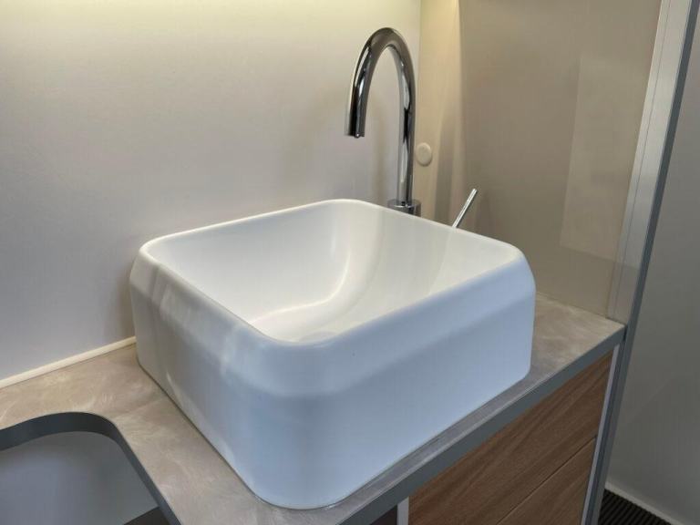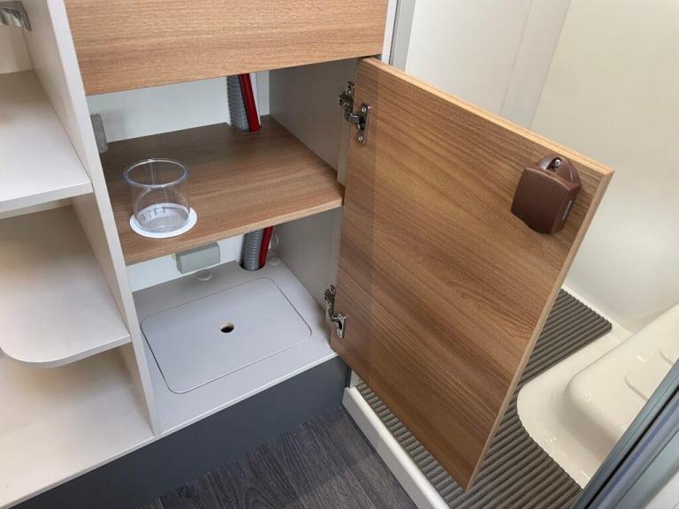 Above the lounge there is an electric drop-down double bed, which saves space when not in use.