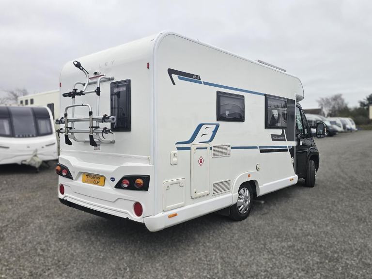 Located in Hull, this 2019 Bailey Alliance 66-2 is a well presented two berth, two belt coachbuilt motorhome built on the Peugeot Boxer chassis and powered by the 2.0L 160bhp BlueHDi diesel engine with 6-speed manual gearbox. With 15,000 miles from new and two owners, it represents a clean, well maintained example of this popular touring model.At 6.6 metres in length, 2.7 metres wide and with a 3,500kg gross vehicle weight, it can be driven on a standard Category B driving licence while still offering a spacious interior layout.The front of the motorhome features a large lounge with two long opposing sofas, complemented by swivel cab seats and a centre dinette arrangement. This area creates a bright and sociable living space with large windows and skylights, and converts easily into either two single beds or one large double bed.The central kitchen is well equipped with a Thetford oven and grill, three burner gas hob, sink with drainer, microwave and fridge, with good worktop space and storage.To the rear is a full washroom featuring a separate shower cubicle, cassette toilet, hand basin, storage and roof vent, offering a spacious bathroom area compared with many motorhomes of this size.Specification includes Truma heating and hot water system, cab air conditioning, reversing camera, cruise control, electric windows and mirrors, DAB radio, TV aerial, canopy awning, solar panel, 1000w inverter, split charge system and bike rack.Bailey motorhomes are known for their Alu-Tech bodyshell construction, a timber-free bonded structure designed to improve durability and reduce the risk of water ingress.The motorhome comes supplied with V5 registration document, full service history last service 2025, habitation check up to date, MOT, logbook and manuals.Viewings are by appointment only. Finance, part exchange and warranty options available subject to eligibility. 31-day drive-away insurance available subject to eligibility.