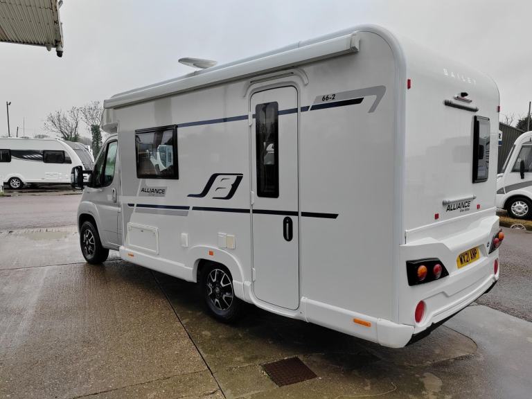 2021 PEUGEOT BOXER 2.2 HDI 160BHP MAN 2 BERTH BAILEY ALLIANCE 66-2 SILVER EDITION. 2 BERTH MOTORHOME FOR SALE IN NOTTINGHAM. COMES WITH A REAR END WASHROOM WITH SEPARATE SHOWER & TOILET. CENTRAL KITCHEN. X2 FRONT BENCHES. CAB SWIVEL SEATS. X3 GAS BURNER HOB. OVEN/GRILL. MICROWAVE. FRIDGE/SMALL FREEZER. BLOW AIR HEATING & HOT WATER. BLINDS & FLYSCREENS. REMIS CAB BLINDS. HEKI ROOF LIGHT. SOLAR PANEL. T/V AERIAL.. AWNING. EXTERNAL GAS & 240V POINTS. REVERSE CAMERA. ALLOY WHEELS. CAB AIR CON. CRUISE CONTROL. LENGTH 6.59 METRES. WIDTH 2.28 METRES. GVW 3500KGS. OUR EXPERIENCED TEAM ARE HAPPY TO CALL YOU ON THE MOTORHOME/CARAVAN AND ANSWER ANY QUESTIONS YOU MAY HAVE. TEL01159664401 [Email address removed. Click Email button to contact us.] FOR MORE DETAILS AS OUR STOCK CHANGES DAILY.