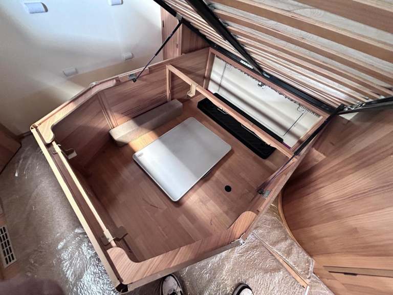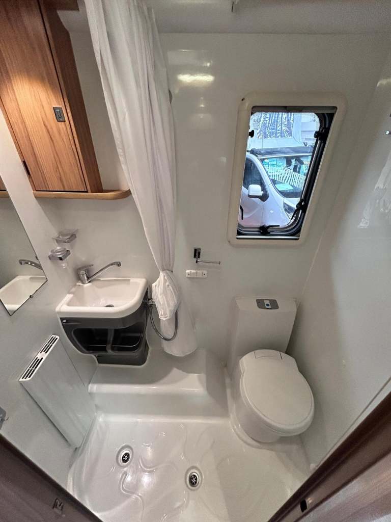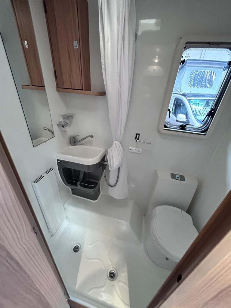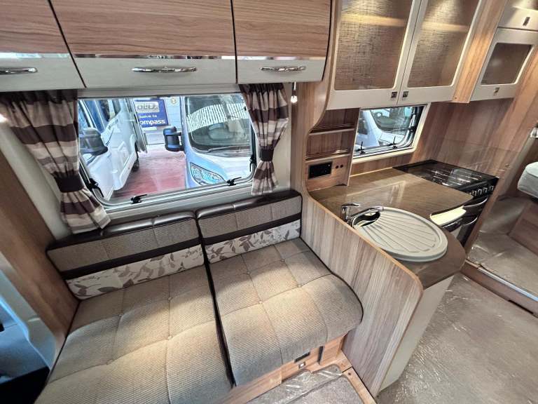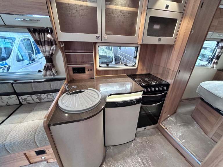 Its done just 30500 miles in total and is based on the 6 speed Peugeot 2.2 130bhp engine. The kitchen in the middle of the layout has a fitted microwave, full cooker with 240 volt hot plate as we ll as 3 gas hobs, a grill and oven!!! It also has a 3 way fridge and ALDE heating fitted!!