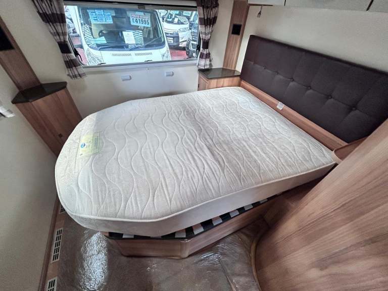 2015 Bailey Approach 730 "Autograph" Edition with the nicer interior and spec. Its the 4 berth with the transverse Island bed and storage underneath. It has the front lounge conversion for the front double bed.