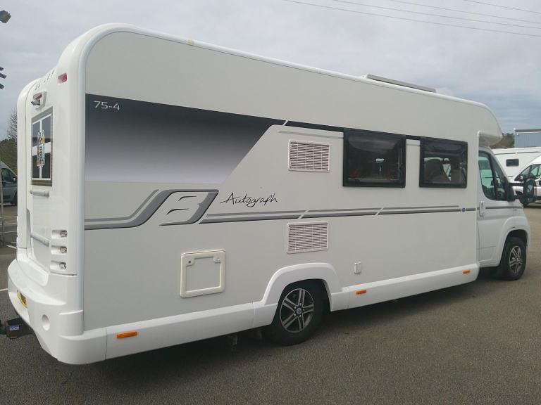This stunning Bailey Approach Autograph 75-4 is based on the 160BHP Peugeot chassis. The layout consists of a French bed, corner bathroom with a separate shower, side kitchen, front seating with 2 rear seatbelts, swivel cab seats. The spec consists of an Alde system for the heating and hot water, full oven, 3 way fridge, microwave, water tanks, control panel, solar, leisure battery, rev camera, tow bar, alloys, TV aerial, awning., Features Include: 12v power socket, drivers airbag, awning, control panel, hob, leisure battery, passenger air bag, separate rear bedroom, separate shower, solar panel, tow bar, under 3500kg, usb points, 2 rear three point seat belts, 3 way fridge, alde system, alloys, battery charger, bluetooth hands free, cab air con, cassette toilet, cruise control, fridge, grill, heater, hot water, mains hookup, microwave, oven, reversing camera, toilet and shower, tv aerial