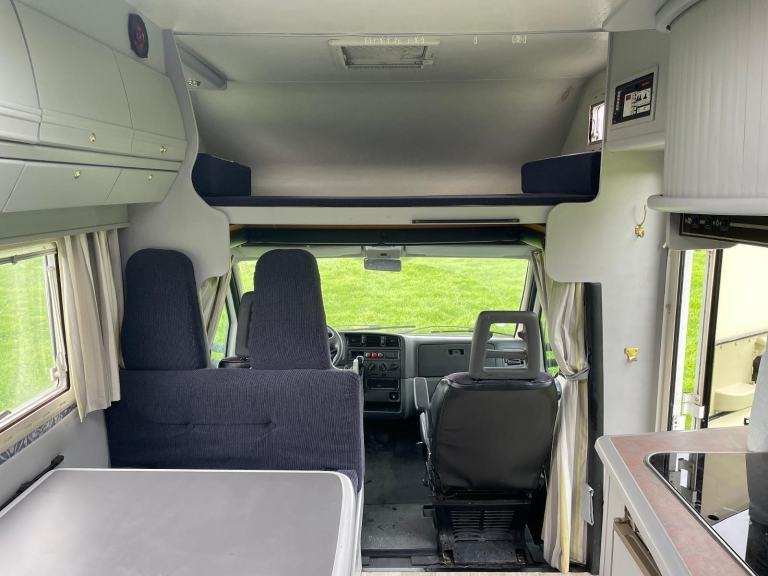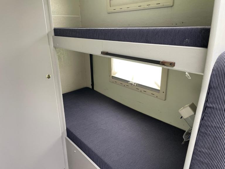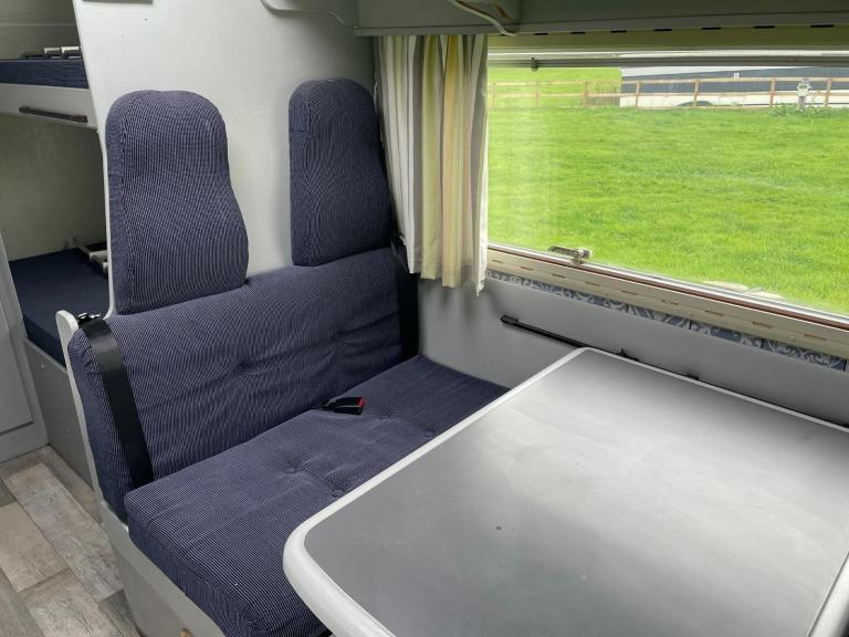 Benimar Europe 5000 LHD Six Berths - Six Seatbelts (Two bunk beds, over-cab double & dinette converts into an additional doubleWashroom with shower, w/c, wash basin & mirrorKitchen area with triple gas hob, fridge & sinkDinette with large table & 4 seats & 4 seatbelts