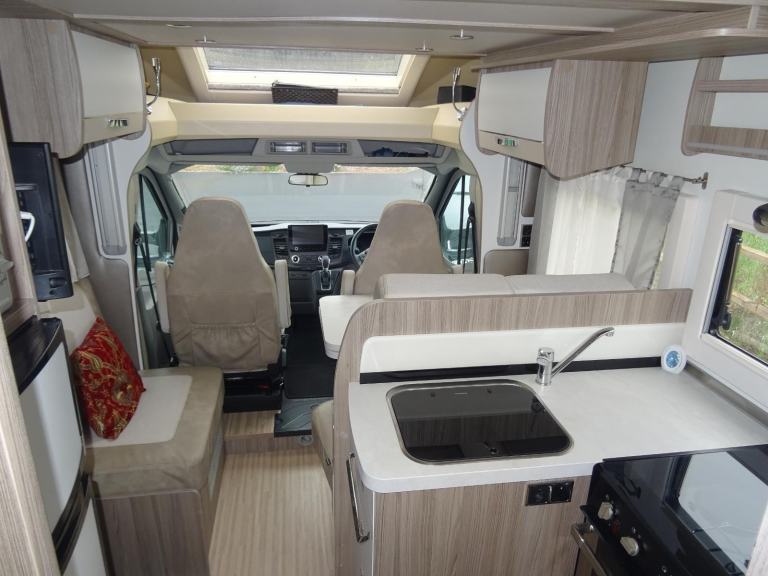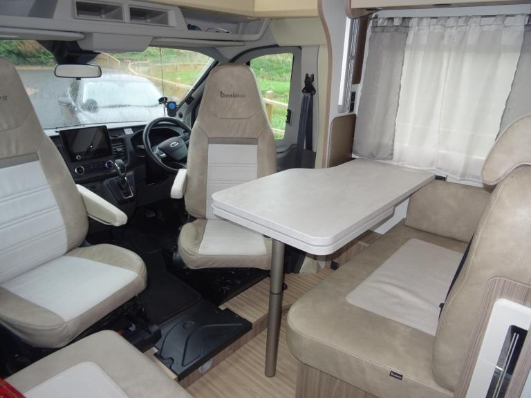 Benimar Tessoro T463 Auto transmission 4 berth coach built motorhome 2020 with only 15.375 miles owned from new and located in the Bury st Edmunds area.Based on the Ford with the powerful 170BHP engine MOT 15/10/2026 and with New habitation report completed 17/10/2025.As you enter the side door moving to the front you have the spacious dining / lounge area that has 2 rear seat belts and comes with a removable table. Both front seats swivel round making this a nice area to relax in. Above this area you have an electric drop down bed that is easy to set up and a good size double.Moving round to the center you have the well equipped L shaped kitchen with two gas hob burners, electric hotplate hob, oven and grill, stainless steel sink, and opposite a large fridge with separate freezer above is a built-in microwave oven, extractor fan, splash back.Moving round you have the central washroom with chrome mixer tap, mirror, storage locker, toilet with electric flush.and opposite a separate walk in shower cubicle with shower with bi-fold door.There is also a privacy sliding door that separates the washroom and bedroom from the front of the motorhome.To the back you have twin fixed rear beds that can be converted to a double bed with a large garage space underneath with 2 large doors each side.Other great features large rear garage with a door each side Include external BBQ point, cab air con, awning canopy, microwave, dual fuel hob, separate shower, reverse camera, sat nav, radio, Bluetooth, alloy wheels, solar panel, wall mounted TV, new full cover, blinds in the cab area, and lots of extrasThis well looked after motorhome has had the weight increased to maximum vehicle weight of 4000 Kg, and you would need a C1 licence to drive this, comes with two sets of keys and is 7.38m long.Located in Suffolk For more information, extensive photo file containing approximately one hundred pictures for an in depth virtual tour of the vehicle before you come to view, and to book a viewing, please call Simon or Maria on 01603 381972 or [Phone number removed]. VIEWING BY APPOINTMENT ONLY. We welcome buyers from across the UK and Europe.