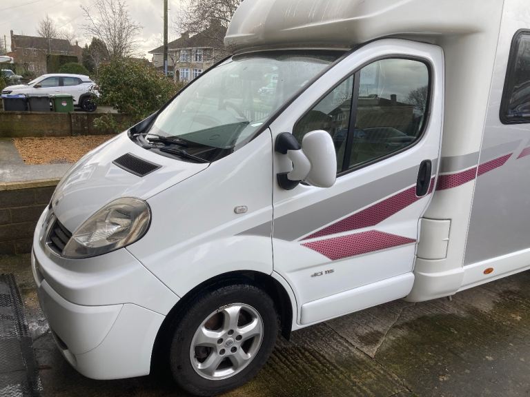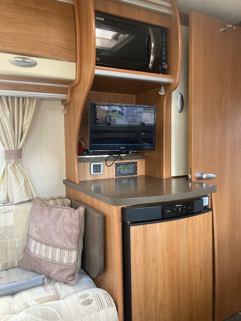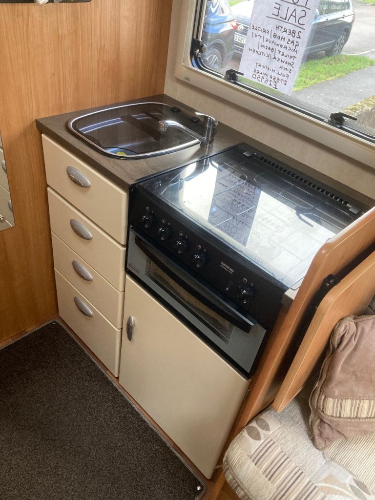 2 berth, coach built, MOT August 2026, serviced January 2026. Features: cassette toilet, basin & shower, gas hob & grill, microwave, tv, solar panel, kitchen sink, fridge freezer, swivel front seats, table and awning. Excellent clean condition, full history, very comfortable.