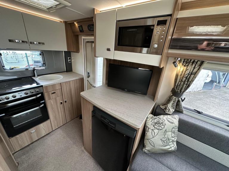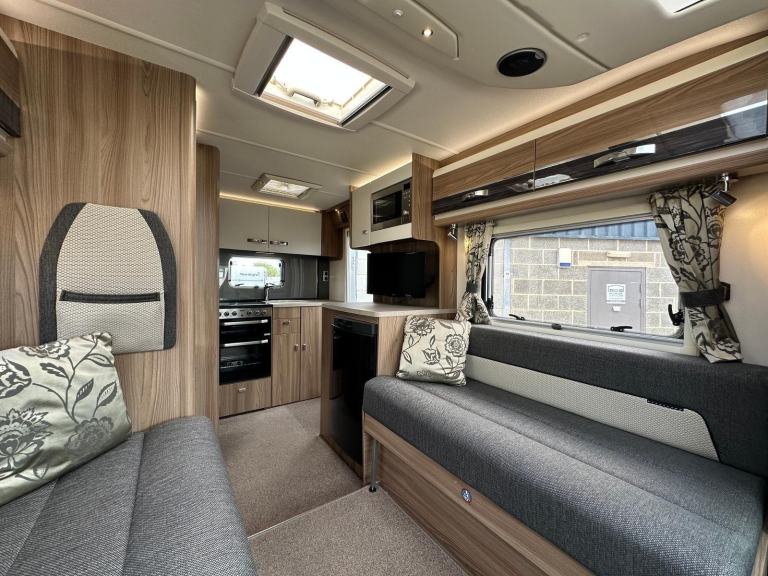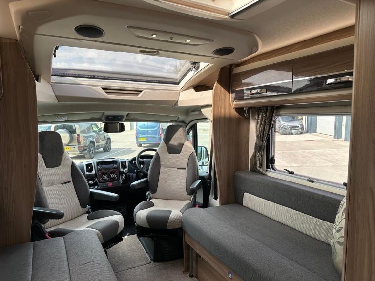 Available at our showroom in Anslow, Burton is this almost as new 2016 Bessacarr 412 motorhome, having covered only 8,847 miles.Owned by the same owner since new, this 2 berth and 2 belt, low profile Bessacarr is built on the proven Fiat Ducato 2.3 multi-jet diesel powertrain and chassis with a 6 speed manual gearbox and the inside majors on simple quality in an uncluttered, open-plan layout which provides a roomy lounge, a well-equipped end kitchen, good-sized corner washroom with a walk in shower cubicle, a truly classic layout with swivelling cab seats, twin sofas, large double or 2 single beds - this layout simply works perfectly for two people to enjoy their trips away.Swivel the cab seats and you’re face-to-face with a lovely lounge area, with the two bench sofas offering additional comfort to stretch out and really relax. Dining for up to six is easily achieved as a free-standing table sets up between the sofas.At bedtime, you have a choice, two good sized comfortable singles, using the swivelled cab seat squabs for additional length for your feet to accommodate anyone who is tall, alternatively pull the sofa bases out to meet in the aisle, flatten the backrests and a very generous double bed is created; you can both sleep either across or length ways.Moving into the modern designed kitchen you will find loads of well-lit functional worktop surfaces, a three gas burner hob, Thetford immaculate separate grill and oven and generous designer circular sink, adjacent to the Dometic combination fridge freezer. Great detailing includes a mains hotplate on the stove, stainless-steel microwave, decent cutlery drawer, removable drainer, generous amounts of cupboard space and a ceiling mounted two-way electric fan. Adjacent is the well appointed corner washroom with the walk in shower cubicle, Thetford swivel cassette toilet with electric flush, modern vanity wash basin with mixer tap, mirror, skylight, medicine cabinet and Truma heating.Additional specification includes, factory upgrade option Lux Pack, front concertina screen blinds, dual aspect reversing colour camera, cab air-con, driver and passenger airbags, electric cab windows, panoramic skylight, cruise control, Fiat U Connect radio with Bluetooth connectivity and outside includes LED daytime running lights, Thule omnistor wind out awning, Thule bike rack, solar panel, habitation thermal insulation, 2 gas bottle locker, side locker, Thule electric entrance step, cab entry steps, TV aerial,16 inch wheels and hook up cable. This motorhome has a maximum vehicle weight of 3500Kgs so can be driven by anyone with a full UK driving licence and comes with two sets of keys. The external length of this motorhome is 5.99m. MOT - FSH - New Habitation Check - 12month WarrantyPlease contact a member of our team to book a convenient appointment. Please note, this vehicle is not a brokerage unit and as such means that it is compliant with the Consumer Rights Act 2015.