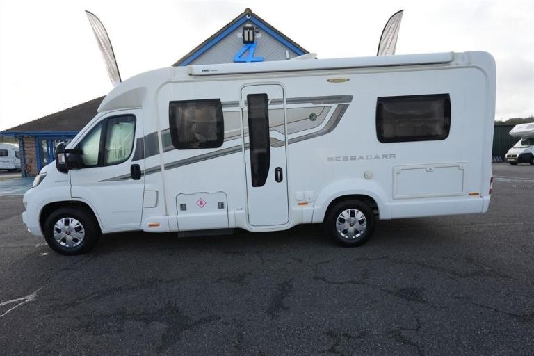 3650 KG Gross weight C1 driving licence required to drive this particular vehicle...L-7.08m...W-2.38m...H-2.82m...Bessacarr are absolutely recognised in the recreational industry and epitomizes solid British build quality through out. This exceptional low mileage family orientated Bessacarr 454, which benefits from being serviced at 6k, 9k and12372 miles. That encompasses an sophisticated practical, plus convenience 4 berth 4 travelling seats layout, including abundance of storage for your personal possessions as well. Now welcome aboard the inviting serene atmosphere, with it's magnificent rear French style double bed. The perfect space to experience a comfortable nights sleep. Adjacent the corner spacious bathroom with an separate shower cubicle and a oval hand wash basin. The ideal area to literally freshen up after the days exploring. Next the central modern appliance kitchen. Featuring dual fuel hobs 3-burner gas hobs,1-electric plate, combination oven grill, microwave and fridge freezer. A chefs dream, for rustling up quick snacks or delicious family meals. The naturally bright multi functional dinette/ lounge. With the ingenious design integrated two front facing travelling seats sofa, a free standing dinning table plus an inward facing sofa and by effortlessly rotating both front captain seats around. Makes the perfect space for socialising and relaxing with family members, while enjoying that cold beer. The Bessacarr 454 is also enhanced with an exclusive package such as wind out canopy awning, cab air conditioning cruise control, cab blinds, solar panel, outside gas BBQ point, 2 bar bike rack, reversing camera and will certainly elevate your family holidays for sure.
