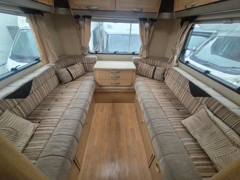 Comes with all the usual Bessacarr features including Awning, Bike Rack, Reversing Camera, 6 Seatbelts, Overhead Bed, TV, End Lounge, and many many more.