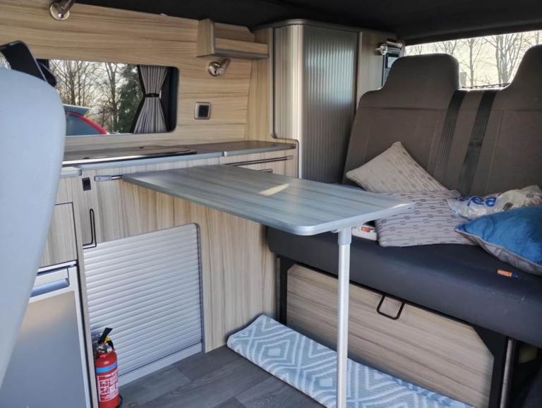 Van has fitted Flamma s45 wind out awning. Also included is a Kampa Trip driveaway awning, ground sheet, carpet, Kador fixing strip and clamps so that it can be fitted onto the Flamma rail. This was bought last year and used for 2 trips. Kenwood Head unit on dashboard, with Apple play and Android auto