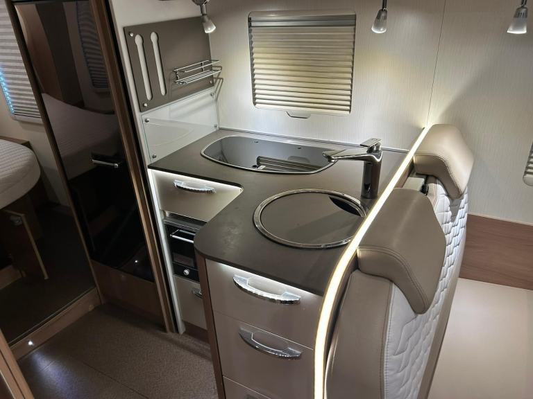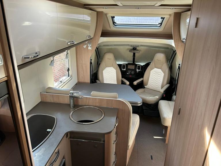 We are pleased to offer this beautifully presented motorhome.As you enter the van there is the fully equipped kitchen area comprising of a large fridge with freezer compartment, 3 ring gas hob, oven, sink with mixer tap and plenty of storage space for all your kitchen essentials.To the right is the dining area with a forward facing bench seat, a single side facing seat and a large table. The bench seat has 2 seat belts. The 2 front captain seats swivel to create a comfortable entertaining space for families and friends. There are storage lockers above, a large skylight above the cab that floods the van with natural light.To the left of the kitchen you will find the spacious washroom with hand basin/vanity unit, shower, mirror and cassette toilet.At the rear of the motorhome is the bedroom featuring the Island bed, wardrobe to the left and cupboard with shelves to the right. There is a skylight above and windows either side.The cab has privacy blinds to the side windows and windscreen, 6 speed gearbox, radio, reversing camera, a security safe for documents/laptops etc and air conditioning.All windows have fly screen/blinds.Outside the van there is a wind out canopy, solar panel, BBQ point, Gasflow system with 2 x 11kg bottles and Euro adaptors, alloy wheels, spare wheel and large garage measuring 800mm x 740mm x 2160mm.The van has had 4 new tyres and Cambelt change in 2024 and has a Thatcham Cat 1 Alarm fitted. AS THIS MOTORHOME WEIGHS 3850KG IT REQUIRES A C1 LICENCE anyone passing their test prior to 1997 should have it as standard. THE VAN IS LOCATED IN PORTLAND, DORSET.