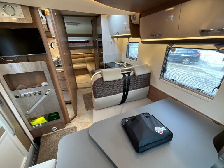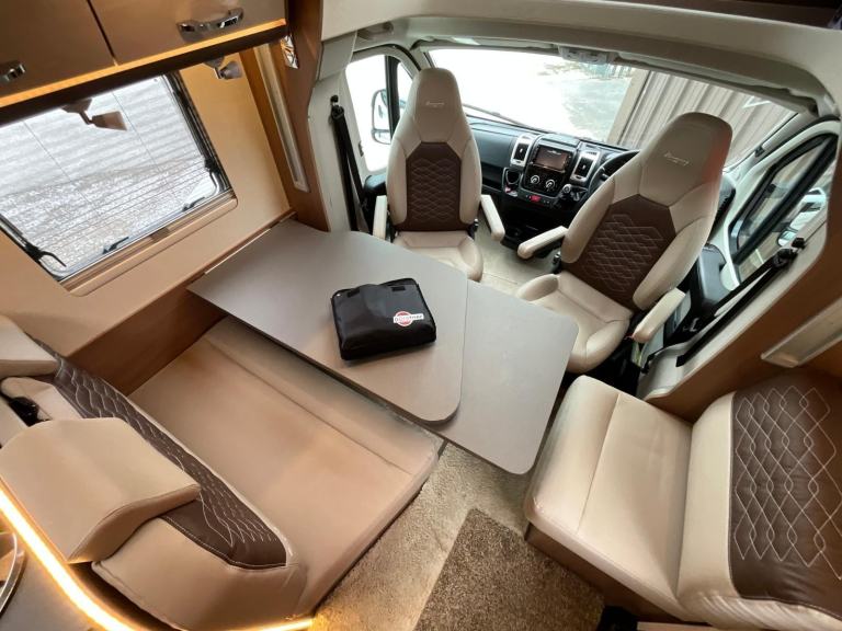 Motorhome Depot Derbyshire and South Yorkshire are excited to present this stunning one owner from new 2019 Burstner Lyseo Harmony Line T744 4 berth motorhome on a Fiat chassis. This vehicle is located in Buxton, Derbyshire.True to Bürstner’s reputation for innovation and quality, this motorhome is packed with clever touches and premium features. It oozes style with the cream and chocolate leather type upholstery and high gloss finished units. A must view for anyone seeking comfort, convenience and quality with a huge saving against the price of ordering new.Starting at the rear of the motorhome you will find the light and airy lounge area which offers relaxing wraparound seating with hidden storage beneath the floor and overhead cupboards, a brilliant touch that maximises space and versatility. This is the perfect place to sit and relax watching TV at the end of a day exploring. At the touch of a button an electric dropdown double bed turns the area into a cosy sleeping space without the need to make up a bed manually. Moving forward is the practical washroom featuring a toilet with electric flush, wash basin with mixer tap, separate shower cubicle, mirrored vanity and integrated cabinetry. Adjacent to this is the well equipped kitchen area including a three burner gas hob, oven/grill combo, round sink with mixer tap, large fridge with removable freezer compartment and ample cupboard storage. It’s ideal for preparing meals on the go, with practical placement and modern finishes. To the front you will find the central dinette featuring two additional 3 point seat belts. With an extendable table and 2 captain swivel seats there is plenty of room for 5 to dine comfortably making this the ideal place to entertain or to sit and relax. A second electric drop down double bed is found here completing this 4 berth motorhome.Additional features:Cruise controlCab air con2x TVWind out canopyBBQ pointReversing cameraTrackerSolar panelNavigation systemAlloy wheelsLarge secure storage boxBike rackMotorhome Depot Derbyshire and South Yorkshire would be delighted to arrange viewings of this motorhome. All our vehicles are HPI checked, and a full demonstration of the vehicles will be carried out on handover.Part exchange and finance welcome, for further details and to arrange a viewing please call Tom on 01332 974436, [Phone number removed], [Phone number removed].