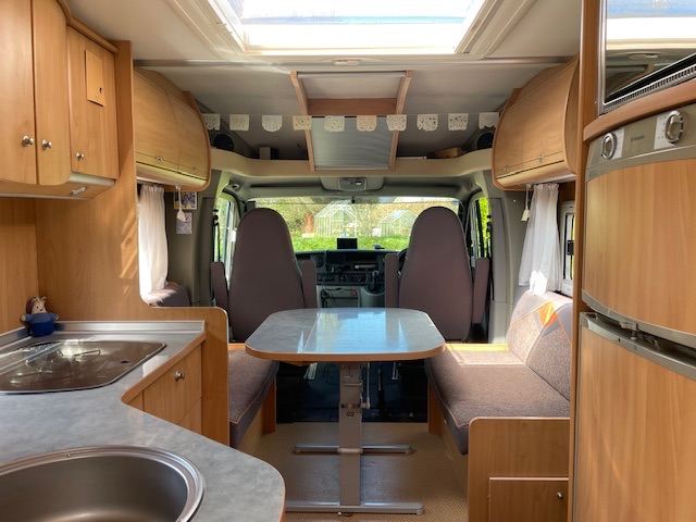 This 2-3 berth Burstner Delfin T686, based on a Renault Master chassis with a 3 litre diesel engine, has an amazingly spacious feel. It is 6.8m in length and weighs 3500kg.