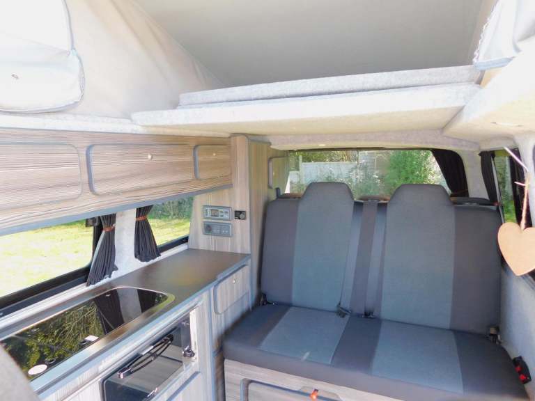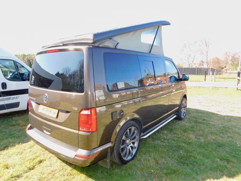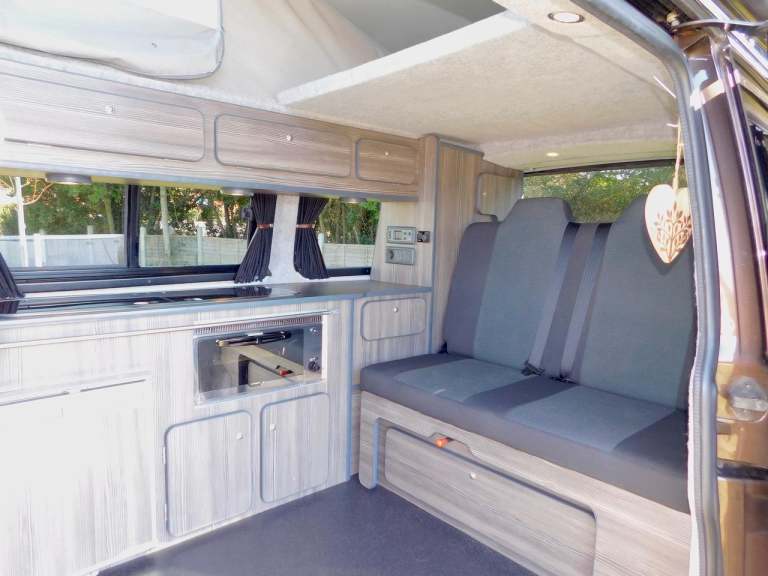 Easy to Drive and Park on the smallest of Driveways and in the Supermarket Car Park. You could easily use this as your Everyday vehicle as well as your Luxury Pop Top Campervan. On the outside we have the smart Rare to Find Toffee Brown metallic paintwork, and inside we have the stylish contemporary upholstery and the High Quality Driftwood finish Cabinetry.