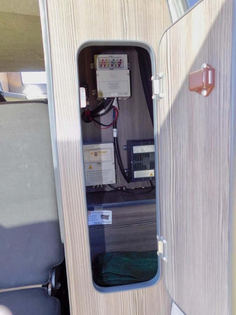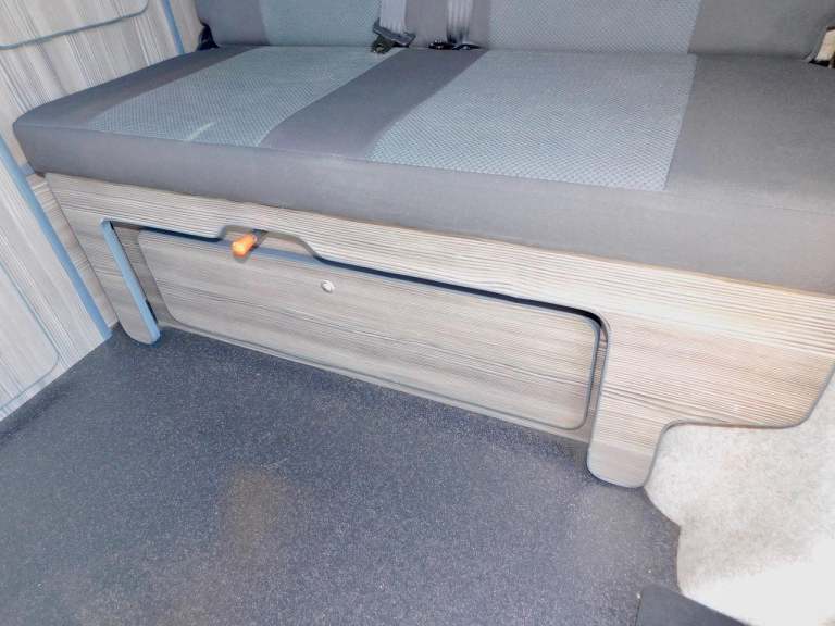 The Front Twin Passenger Seat Swivels to become part of the Living and Dining Area. We even have Webasto diesel Central Heating. The Dining Table easily stores away when not needed. We have smart LED Lighting throughout. This Twin Front Seat Also has a generous Storage Locker underneath its lift up seating section.