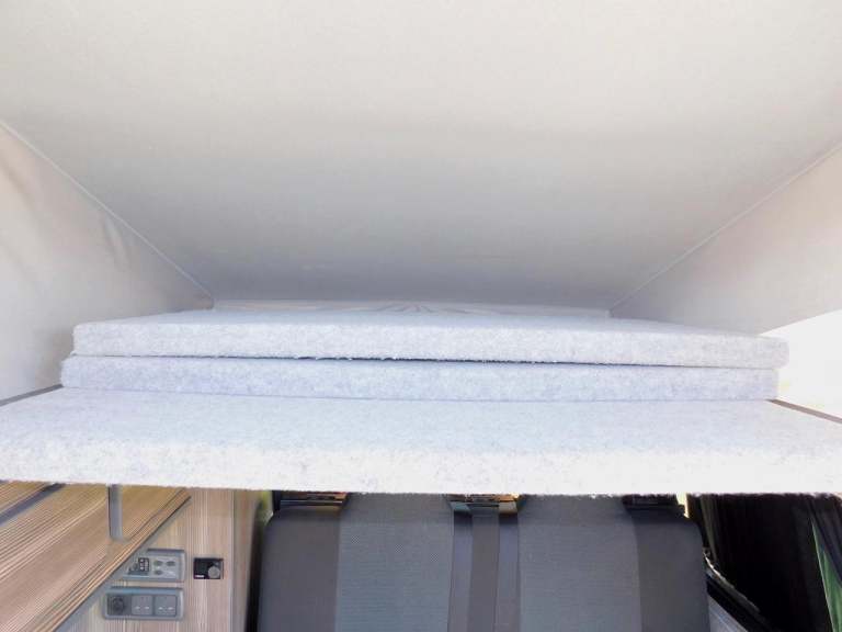 We have the Rock n Roll Double Bed downstairs with its 2 x 3 point Seat Belts and the Upper Double Bed. The Pop Top is Easy to Put Up and Down.