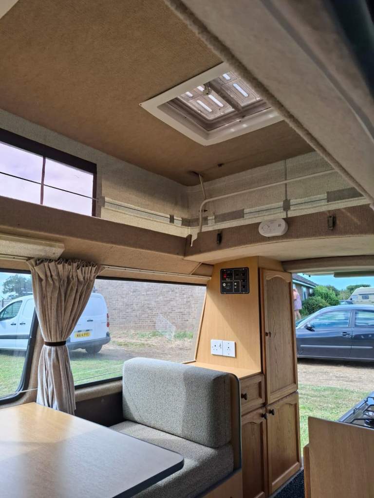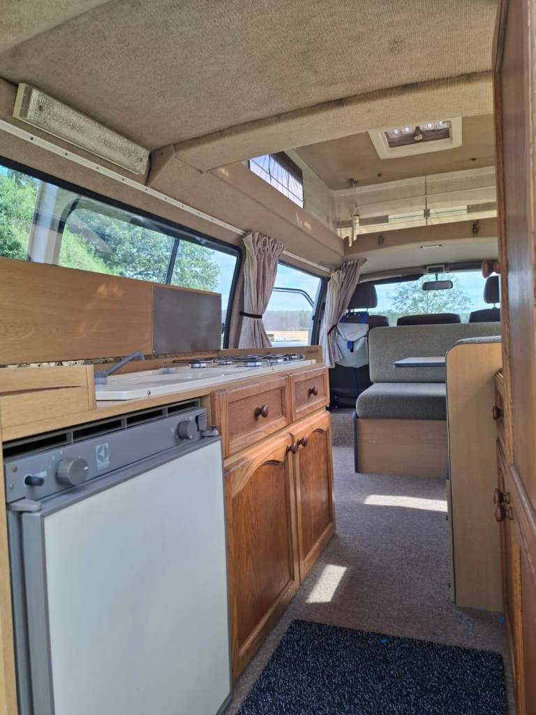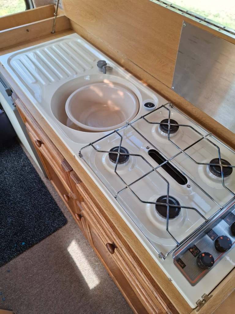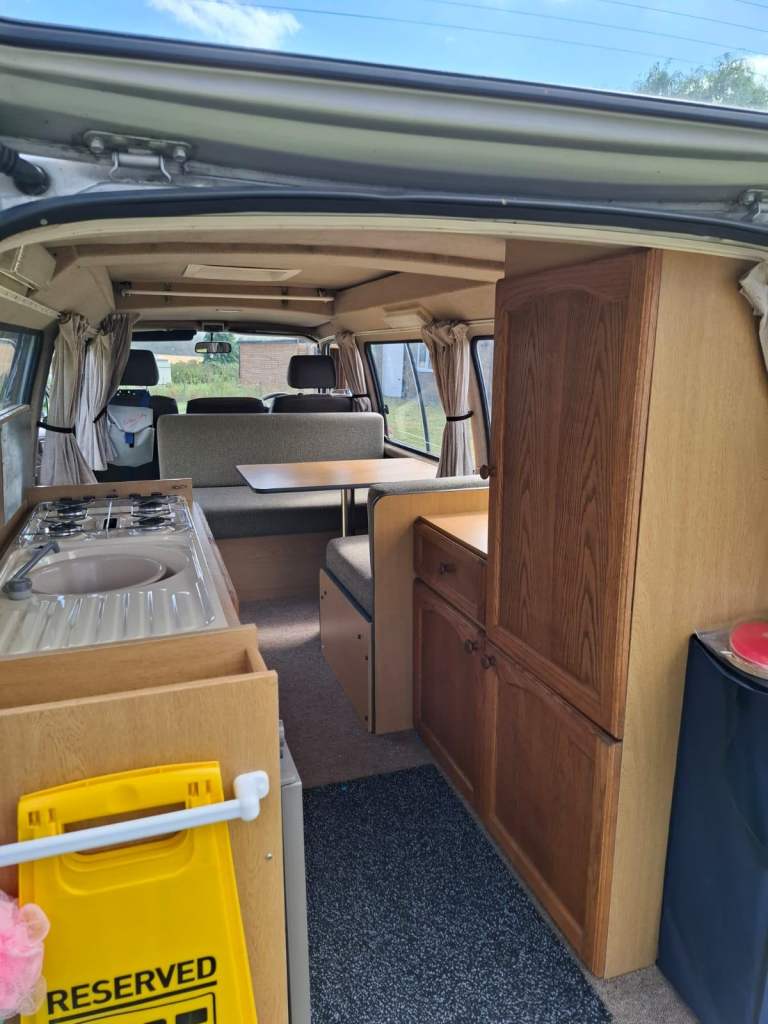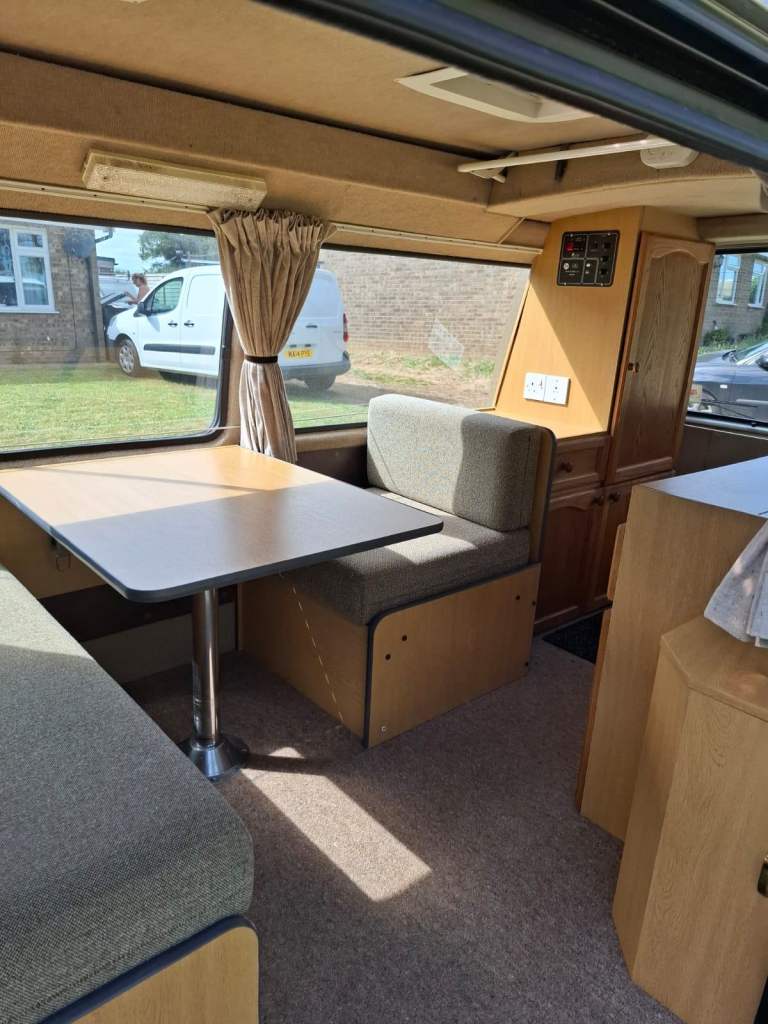 1987 Toyota Hiace 2.0L petrol Huntsman camper van with full history, 87.000 genuine miles, 10 months MOT, excellent condition inside and out, drives superbly and is an absolute joy to drive it is nippy and economical, has been kept in dry storage when not in use, underside has been professionally wax oyled regularly (not underseal) and no signs of any corrosion it is very sound and clean, sofa converts to a double bed, fridge/freezer, 4 burner cooker and grill, 12v lighting and mains lighting, full charging system, internal curtains, dining table and sofa's, comes with 2 sets of keys with alarm fob, Kampa 4 berth drive away awning, steering lock, 2 x gas bottles and lots more accessories.