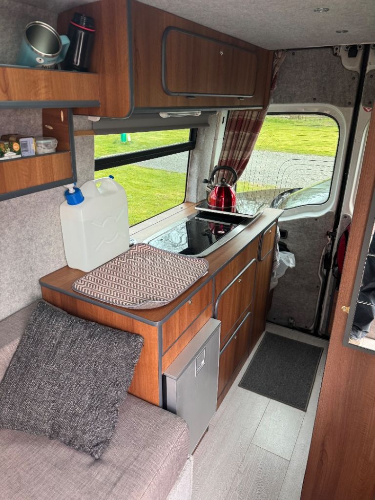 2 berth Campervan built on a mini bus chassis, fully insulated.