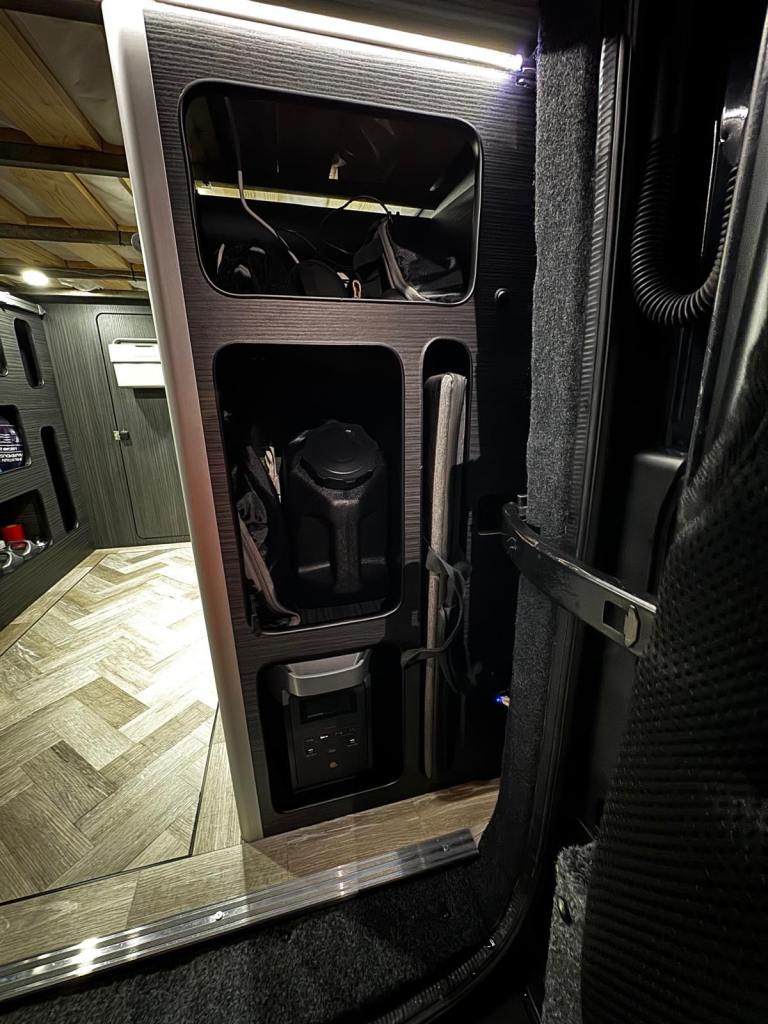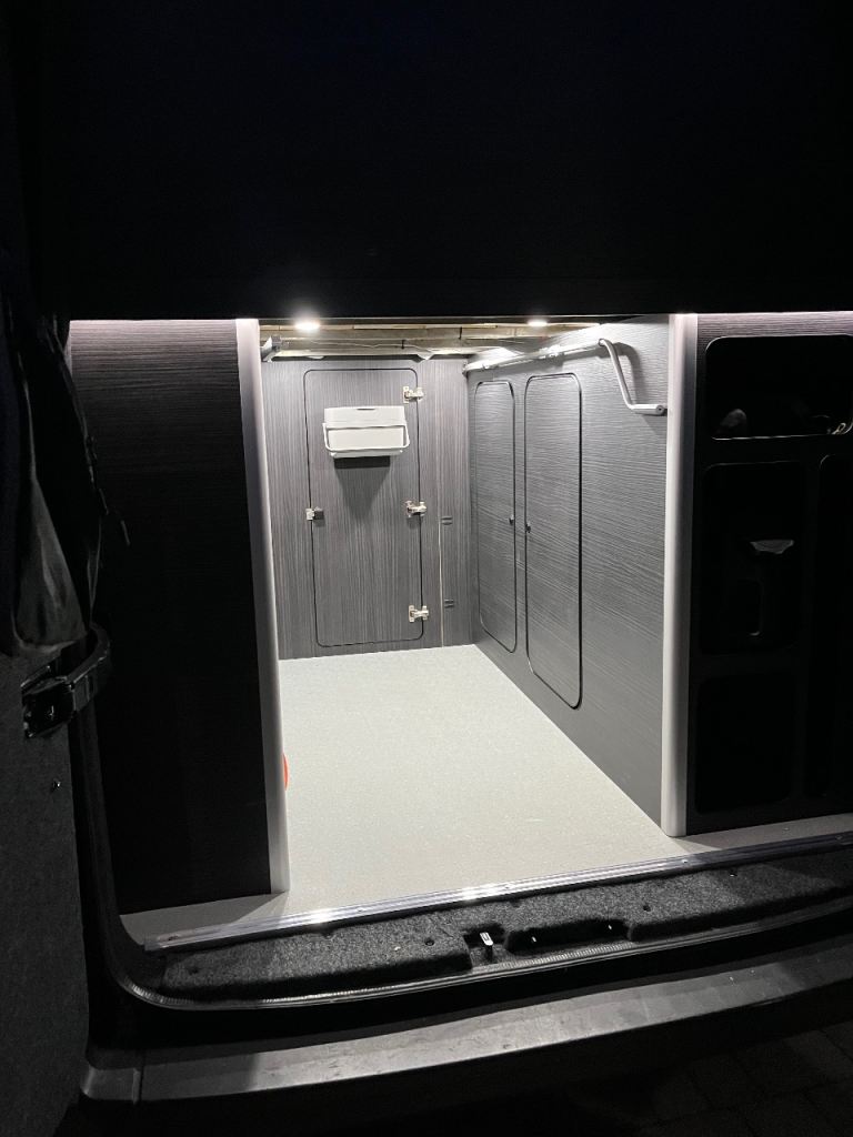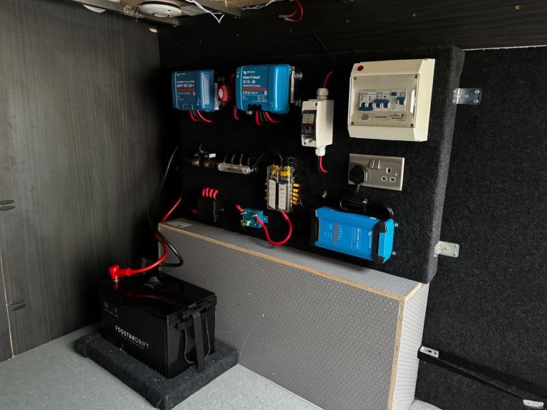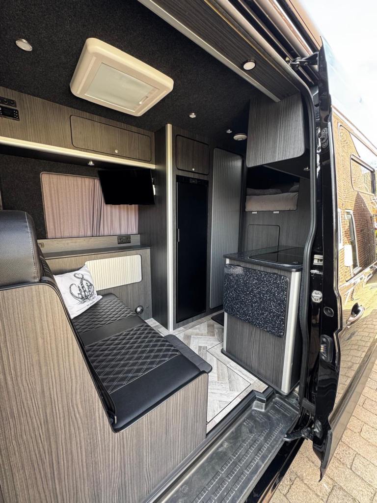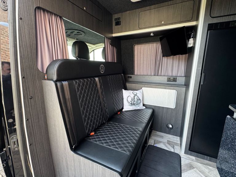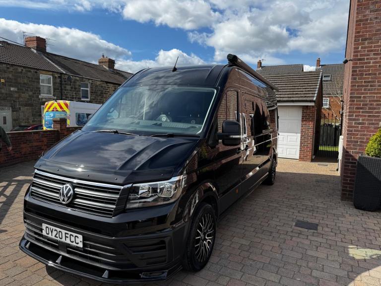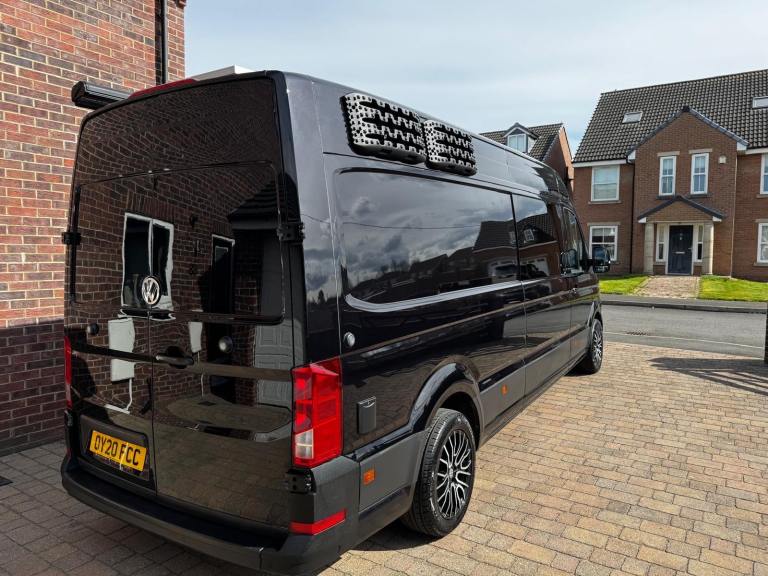 Lwb crafter black Campervan can be used fully off grid or be plugged into site elctrics
