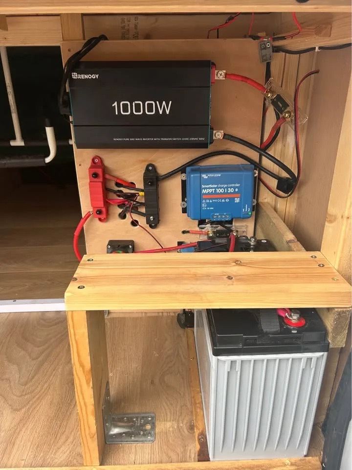 - DC-DC split charger (connected to the van main battery to charge while you drive)