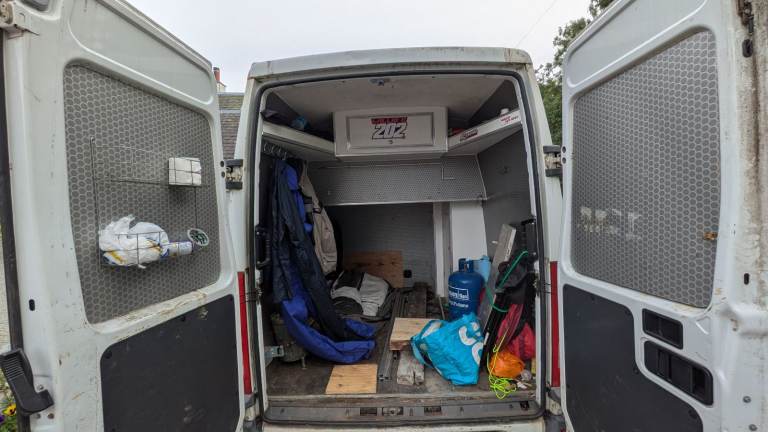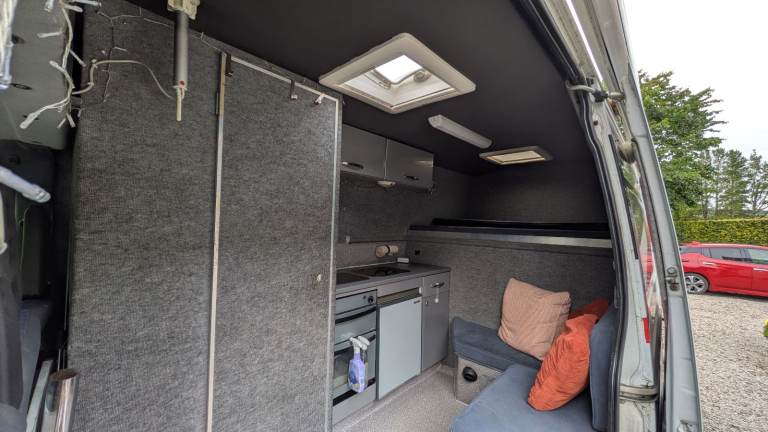 -The van has a huge "garage" section at the back, separate to the living space, originally purpose built for people that do motoX to put dirt bikes in, I use for all sorts of other bits and bobs, tools, workbench etc