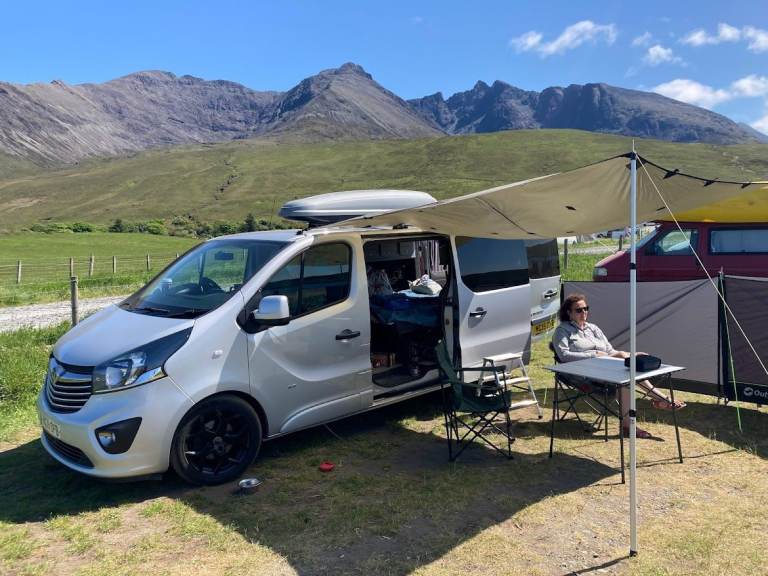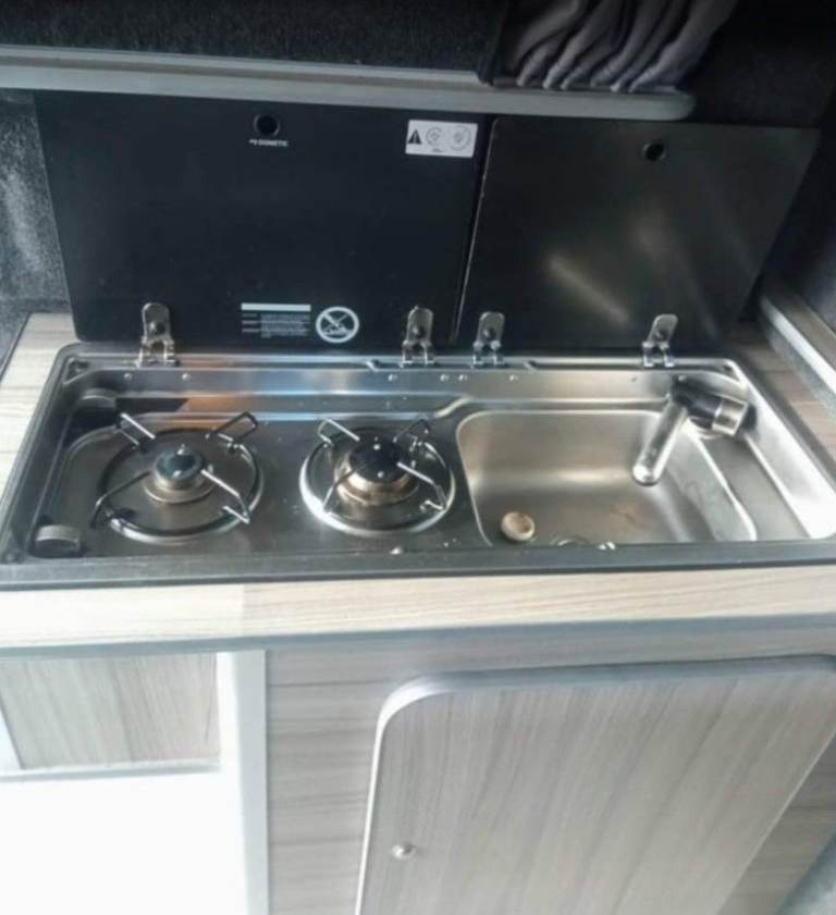Stunning 2 Berth camper, immaculate condition 98,900 miles registered as motor caravan. Full Dealer Service History - MOT till Dec 15th 2026 . 6 gear manual, AC, 2 keys. Drives like a car. 3 seat belts in the front, 2 in the back. LED lights, USB sockets. 12v socket 2nd battery and split charger. 240v mains hook up plus 240V sockets inside - 2 burner Dometic gas hob / sink with cold water, Fold away table, Cabinets & Storage, Black out blinds, Full width/length rock and roll bed with Ikea Mattress Topper. See photos for adventures over the last 3 years – upgraded to a bigger van – ideal starter Camper to see if it’s for you, small enough to be used as a daily driver & less than 5m long so costs the same as a car on the Ferries.