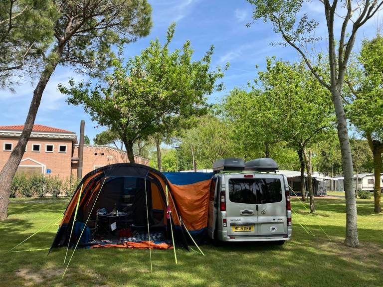 Massive Olpro inflatable awning, with 2 black out bedrooms – cost £980 last year.