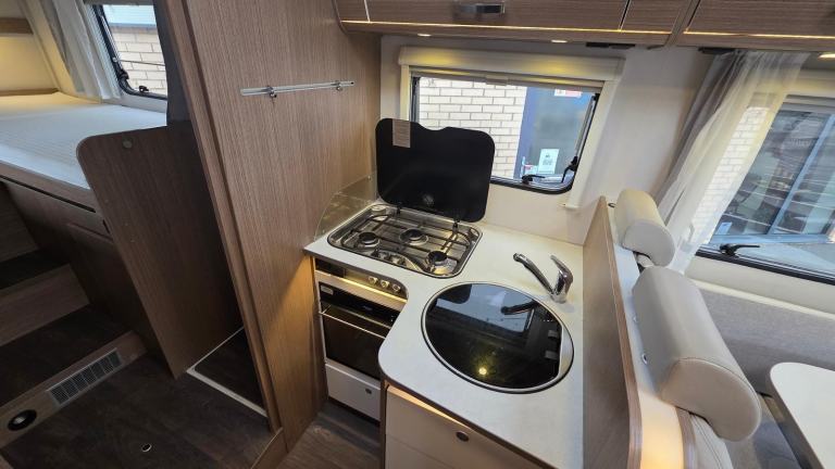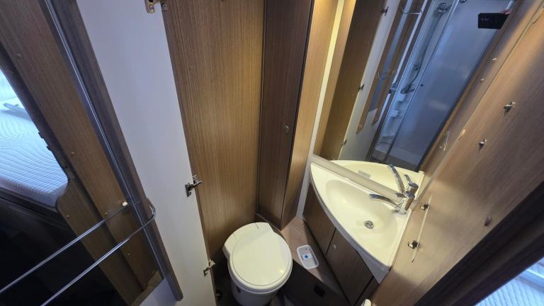 TV; Central Heating; Fixed Double Bed; Cooker; Air Conditioning; Back Seat Safety Belts; 12V Lighting; External Side Lockers; Central Seating Group; V5 Registration Document; Blinds; Anti-Lock Brakes (ABS); Mains Hookup; Solar System; Separate Shower; Double Glazing; Sink; Oven; 240V Lighting; Driver Airbag; Hand Washbasin