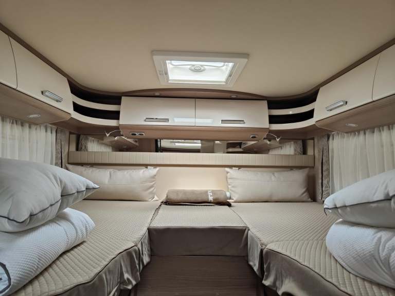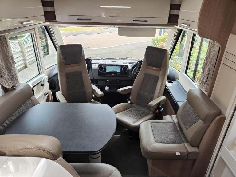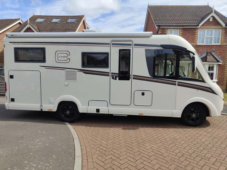 This is simply an AS NEW example of the outstanding Carthago C line 143LE. This Mercedes based motorhome is not to be compared with general Fiat based vans and features a 2.0 engine with an upgraded 170 bhp and includes a 9 speed automatic gearbox. The quality and equipment level is beyond compare and this high spec example includes a Truma roof mounted aircon unit, a thule 4.5 metre awning, unmarked alloys, reverse camera, front and rear sensors, a gaslo system with 2 large bottles, Tracker, category 1 alarm and 2 leisure batteries. A recent habcheck and engine service included. This A class motorhome features 2 rear singles with the option of having a huge double and has the much need garage underneath with a double floor for better insulation. 1 owner from new and 12000 miles. A c1 licence will be required. Based in Kent and more pictures available.